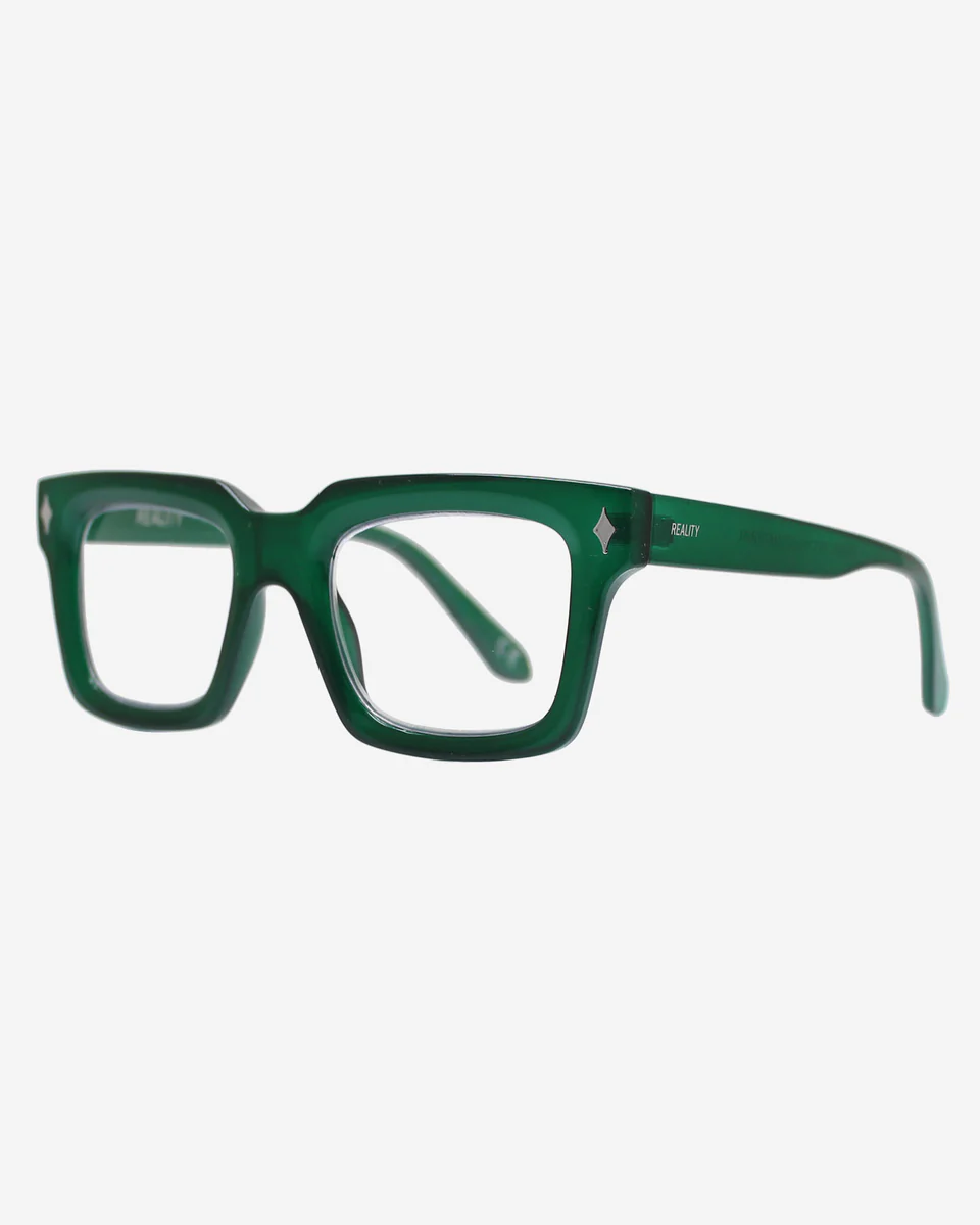 Sharp, sculpted, and seriously stylish, Ballard puts a bold twist on a classic rectangular frame. Whether you go for the rich jewel-toned green or the forever-chic black, both feature glossy acetate, subtle metal accents.