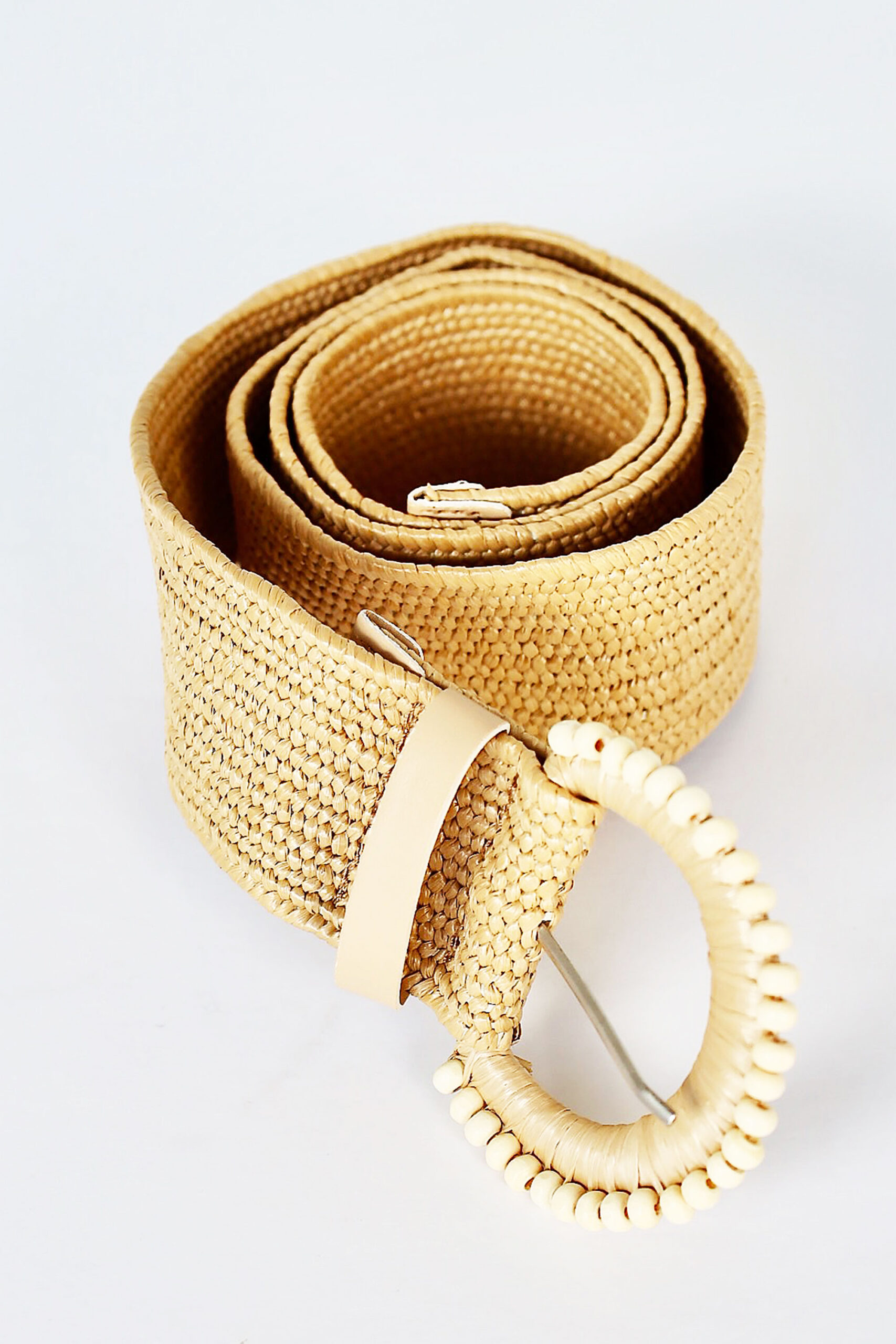 Archer House Raffia Belt Coffee Wide Round Buckle