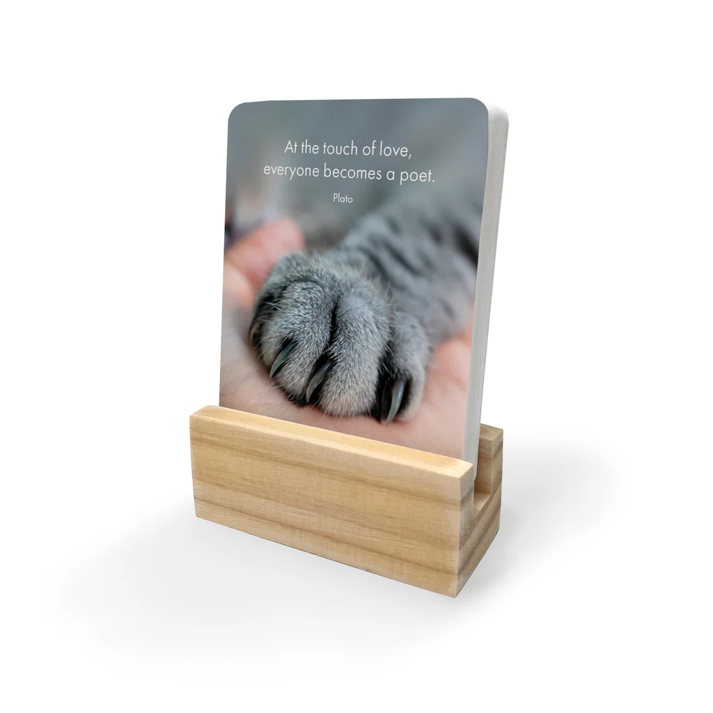 The Great Catsby’ – a charming set of 24 quote cards celebrating the wonderful relationship we share with cats. Each card features captivating photographs of our gorgeous feline friends and serves as a perfect decoration when displayed on the included timber stand. Inspired by their gracefulness enigmatic charm and playful nature these Little Affirmation cards offer musings about both the cat and human connection with uplifting quotations that will brighten the day of any cat lover.