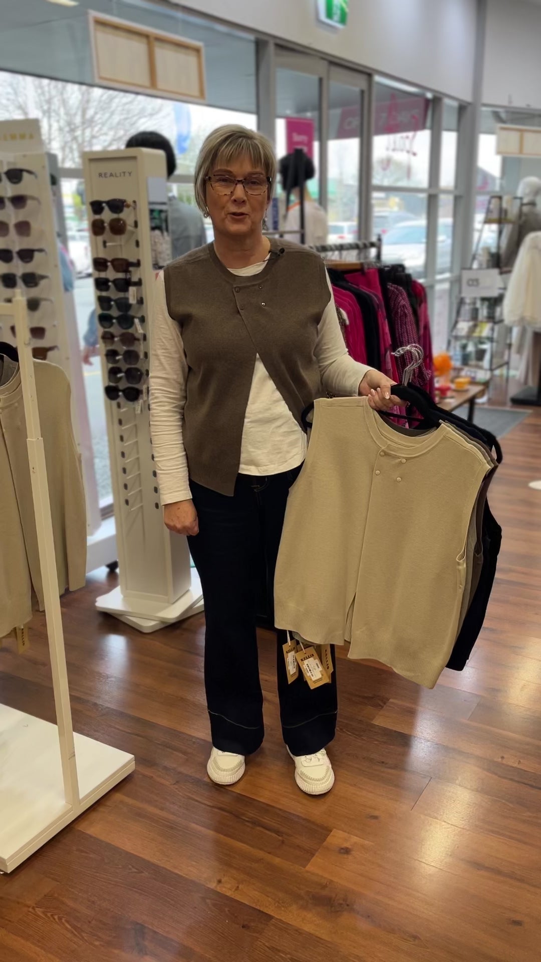 In the video Jan is wearing the chocolate coloured vest, but the fit is the same for all colours
