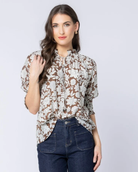 Ruching also features on the collar that can be secured with a same-fabric tie.
