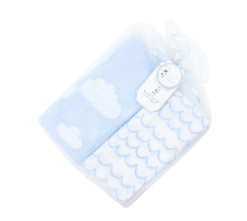 Muslin wraps powder blue set of two 100% cotton - Perfect for wrapping baby in and presented in lovely organza white bag