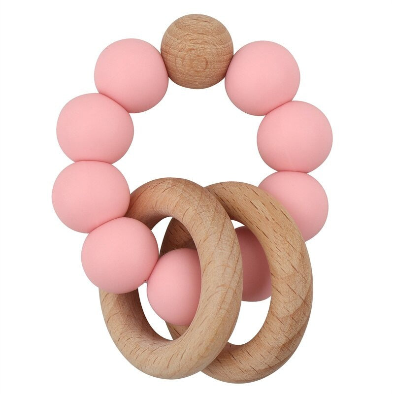 Our quality silicone beads Wooden Ring Rattle Teether helps to develop eye hand coordination and fine motor skills.