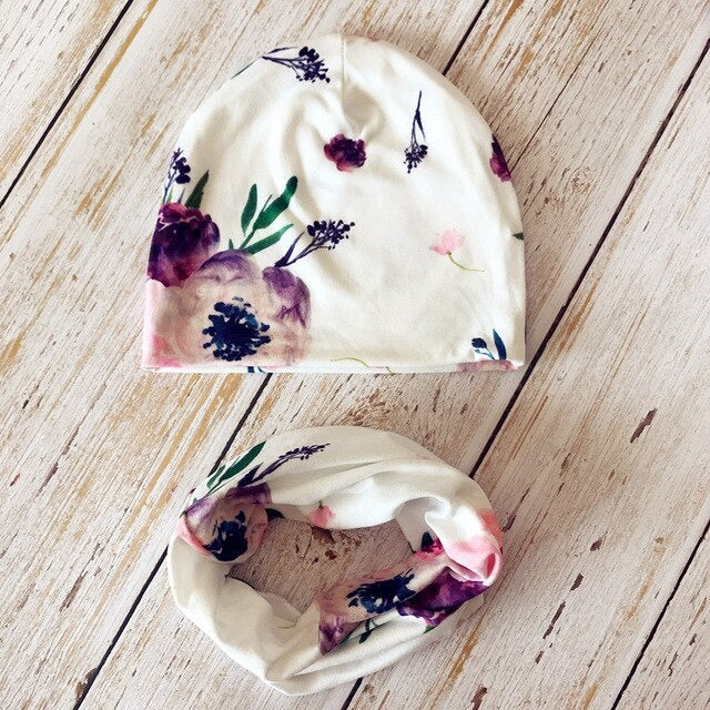 Fresh Baby Beanie + Dribble Scarf Set Purple Pansy