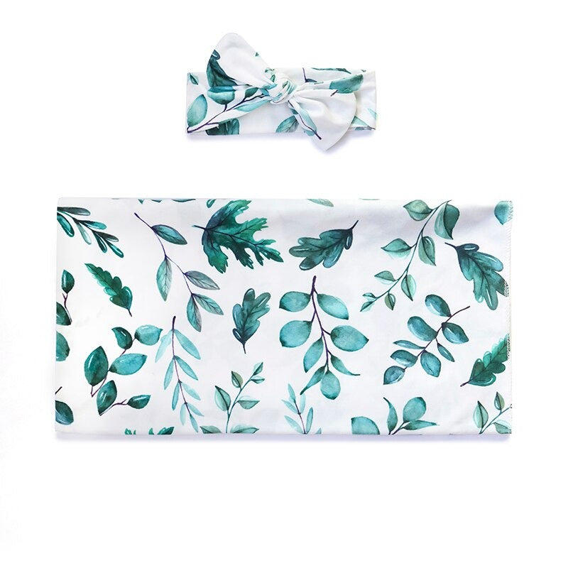 Fresh Baby Jersey Swaddle + Headband set Forest Leaves