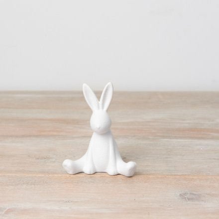 A chic and contemporary textured bunny ornament with a white painted finish.