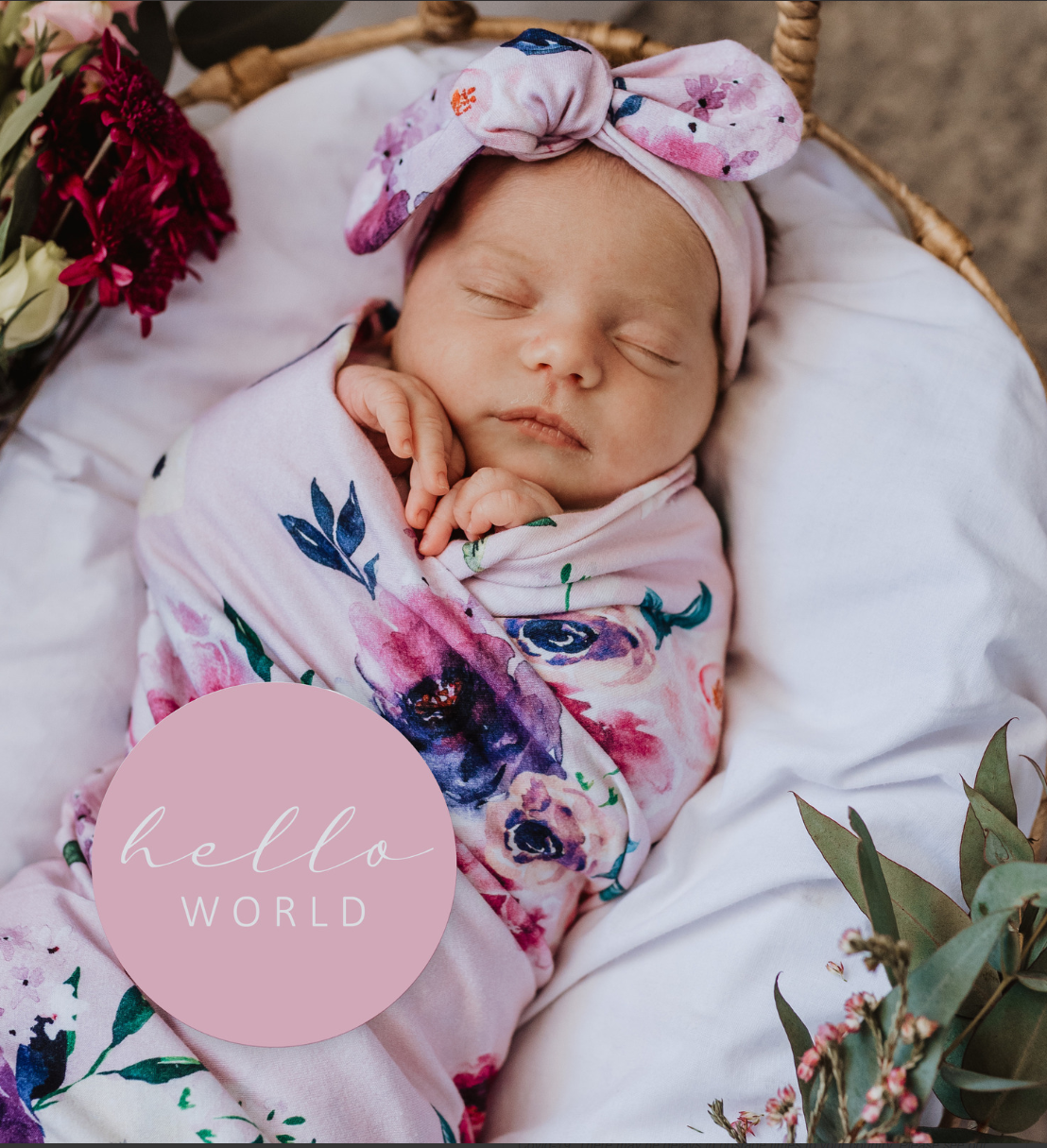 Included in this pack is the Floral Kiss design and Blossom Pink colourway to match our baby swaddle wraps. This would make the perfect gift for a new baby or the expecting mum.