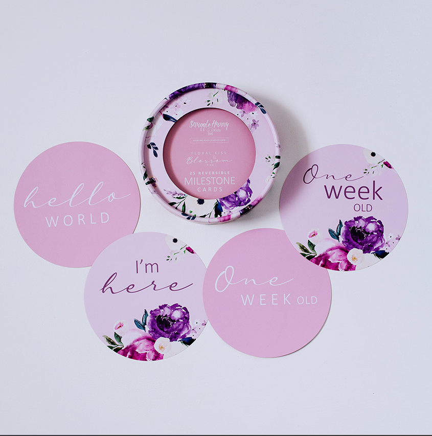 Snuggle Hunny Baby Milestone Cards Floral Kiss & Blossom Pink Reversible