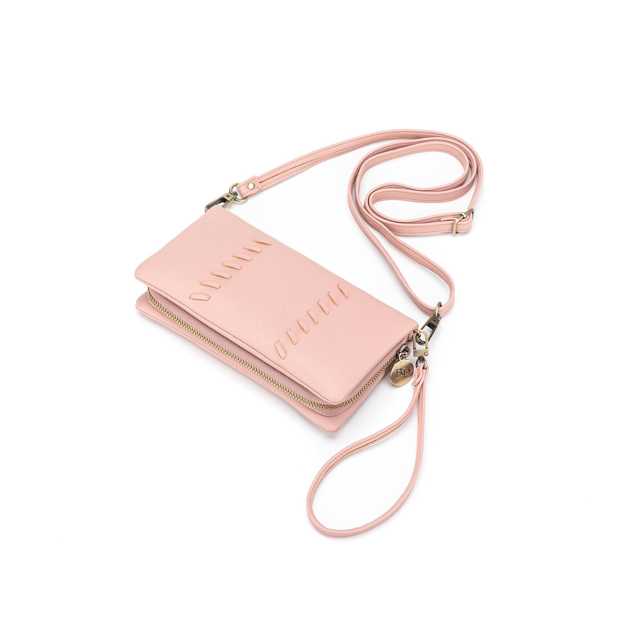 - Internal Features: 12 credit card slots, multiple coin/cash compartments. Includes a wrist and cross body strap for easy styling.