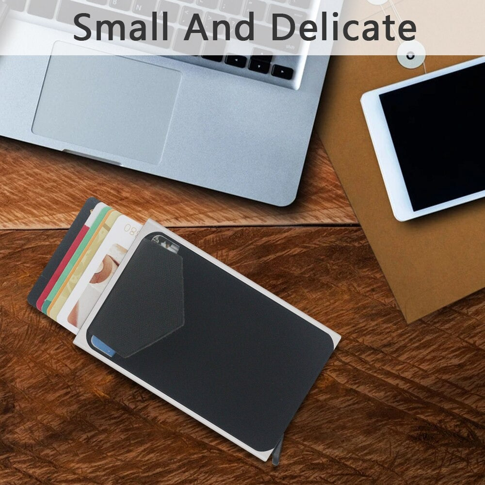 The perfect card holder. Smooth pop out opening, grab any of your cards with the flip of a finger! The pocket sized minialist aluminium wallet is lightweight. Measures 10cm long x 6cm wide x 1cm deep.