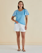 Betty Basics Lottie Embroidered Tee - Baby Blue
