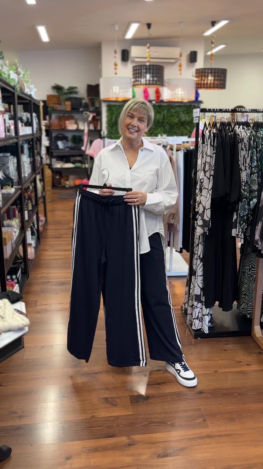 These wide-leg joggers in cotton jersey blend offer a refined approach to casualwear with elasticated waistband and contrast trim detailing. The mid-high rise and relaxed fit create a polished yet comfortable silhouette ideal for transeasonal layering.