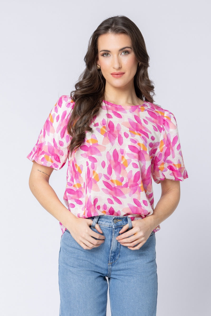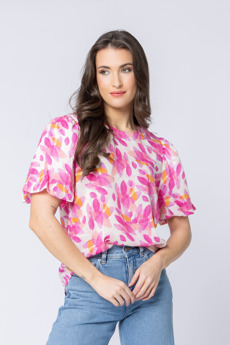 Inject a burst of colour and joy into your wardrobe with the Knowing Top from Seeking Lola. Featuring the stunning 'Romance' print—a playful mix of fuchsia, hot pink, and vibrant orange abstract petals—this top is guaranteed to brighten any day.