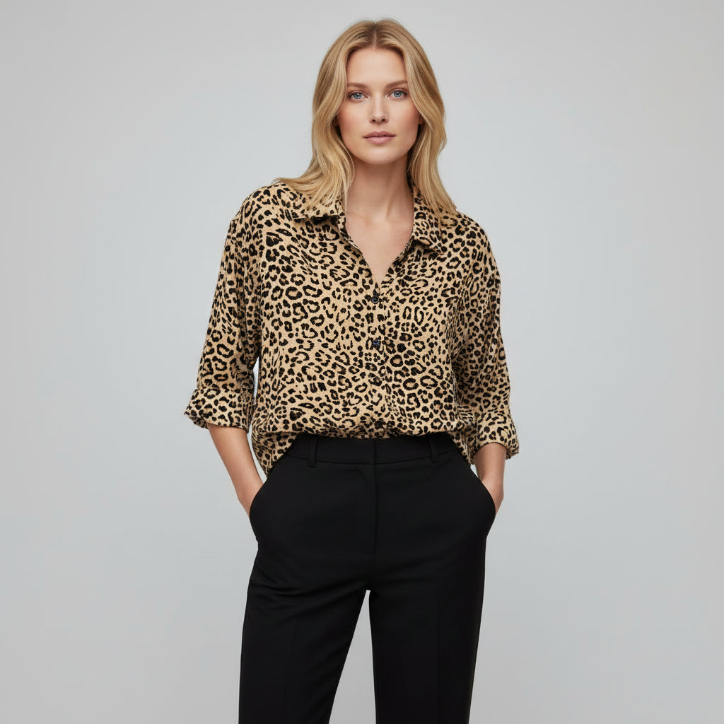 Carbon The Label Kenzie 3/4 Shirt - Leopard Print