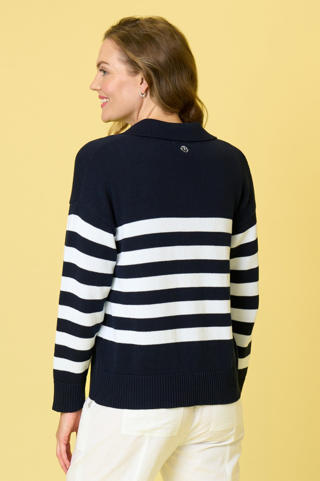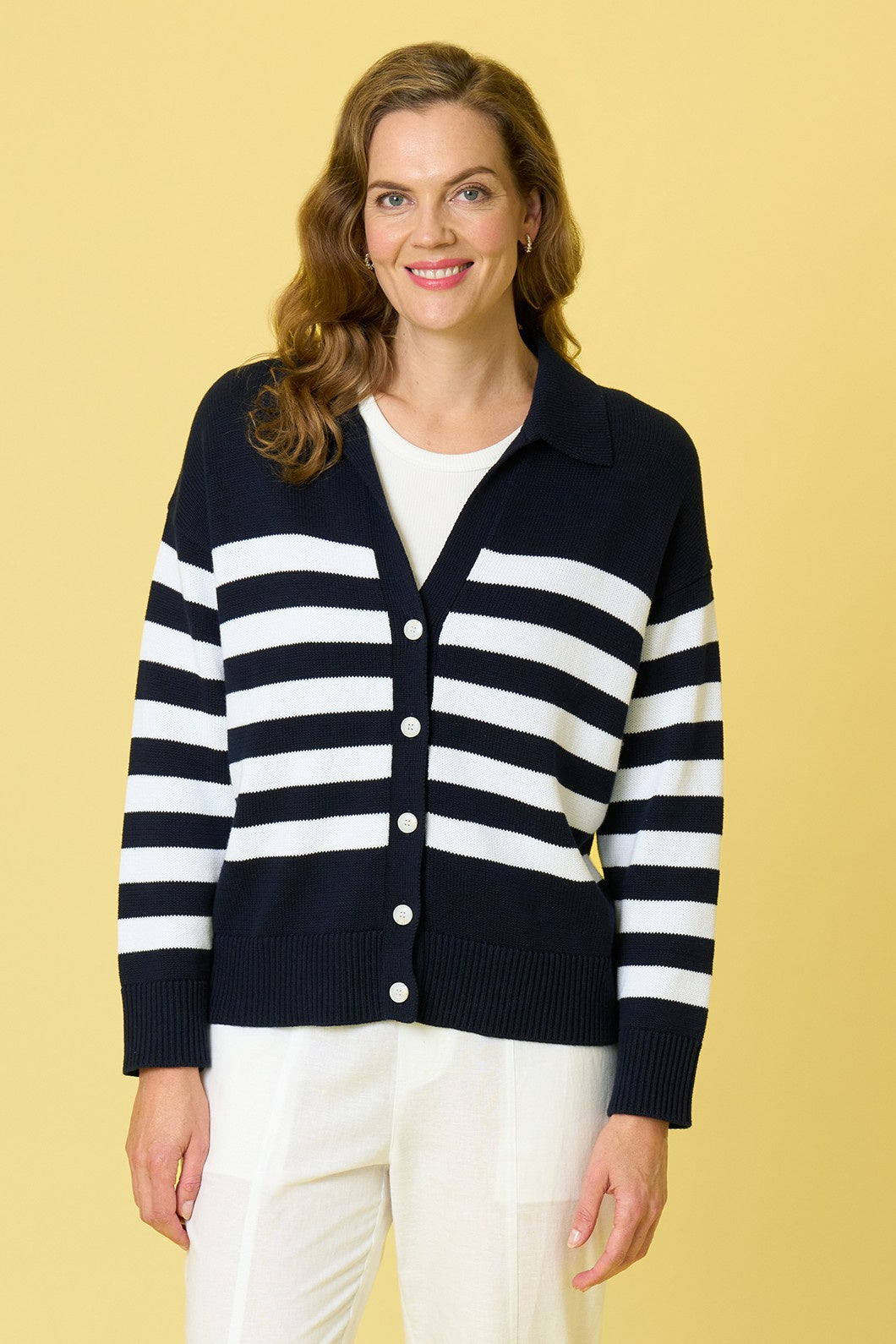 Charlie Jane Jacks Point Cardigan - Navy/White Stripe