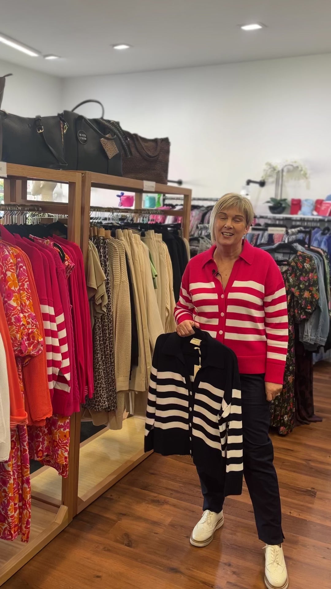 Embrace classic nautical style with the Charlie Jane Jacks Point Cardigan. This elegant and versatile piece features a bold navy and white stripe design, making it a timeless addition to your wardrobe.