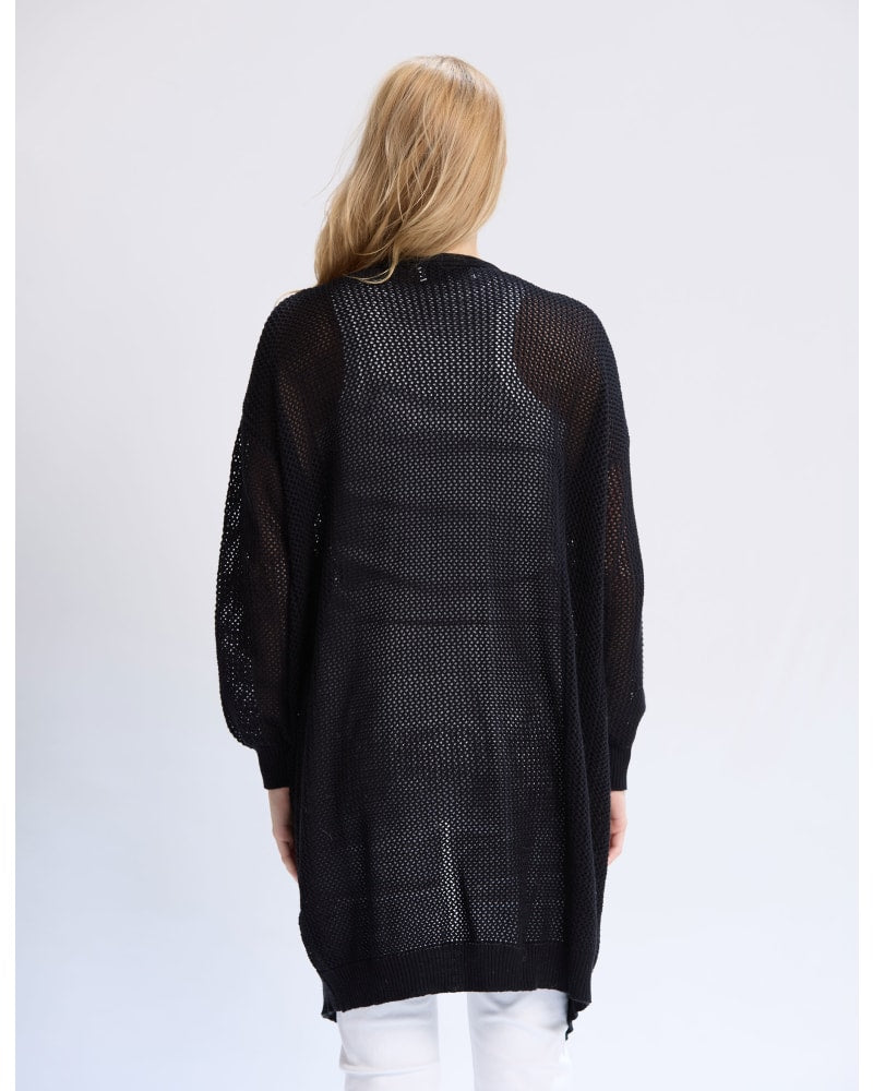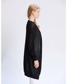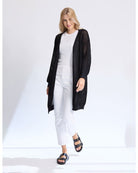 The Stella + Gemma Arizona Cardi in Black is the perfect layering piece for those in-between seasons. This open-style, knee-length cardigan offers a relaxed fit and a soft feel, making it a comfortable and stylish addition to any outfit.