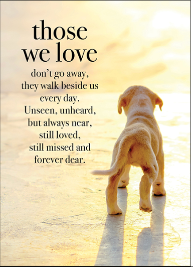 Those we love don't go away, they walk beside us every day. Unseen, unheard, but always near, still loved, still missed and forever dear.