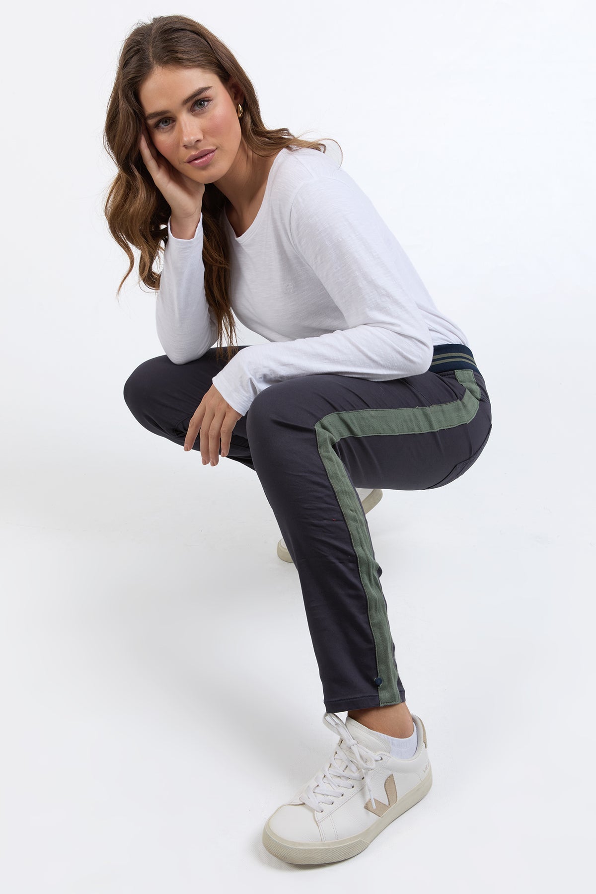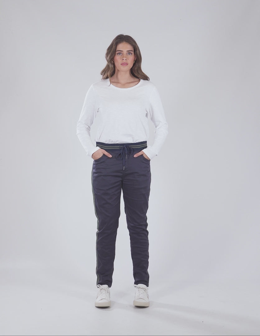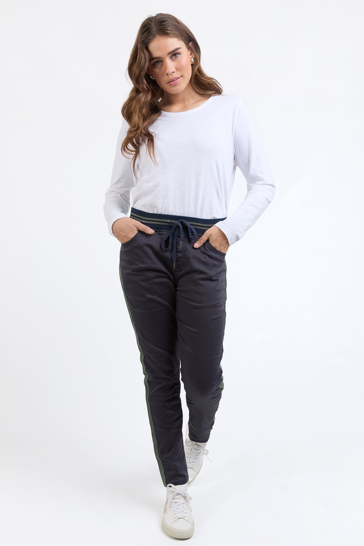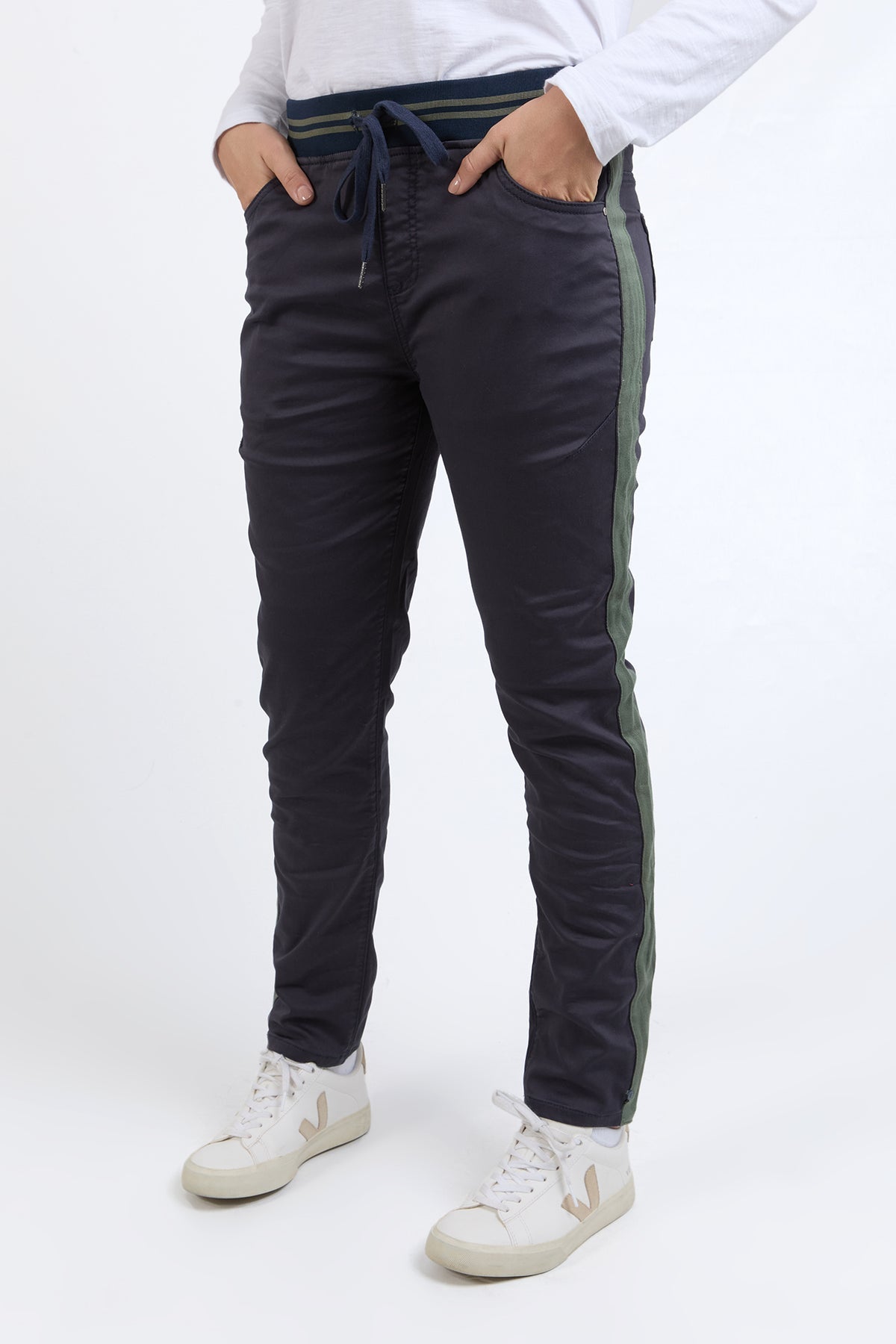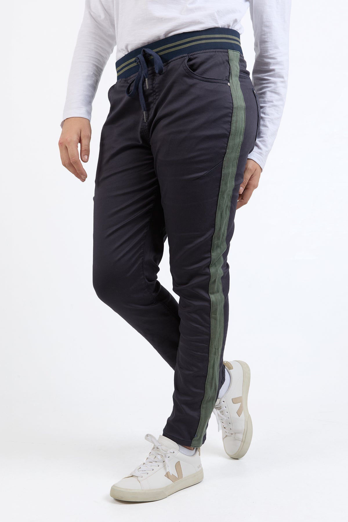 Elm Margo Jogger With Side Tape - Navy With Khaki Tape