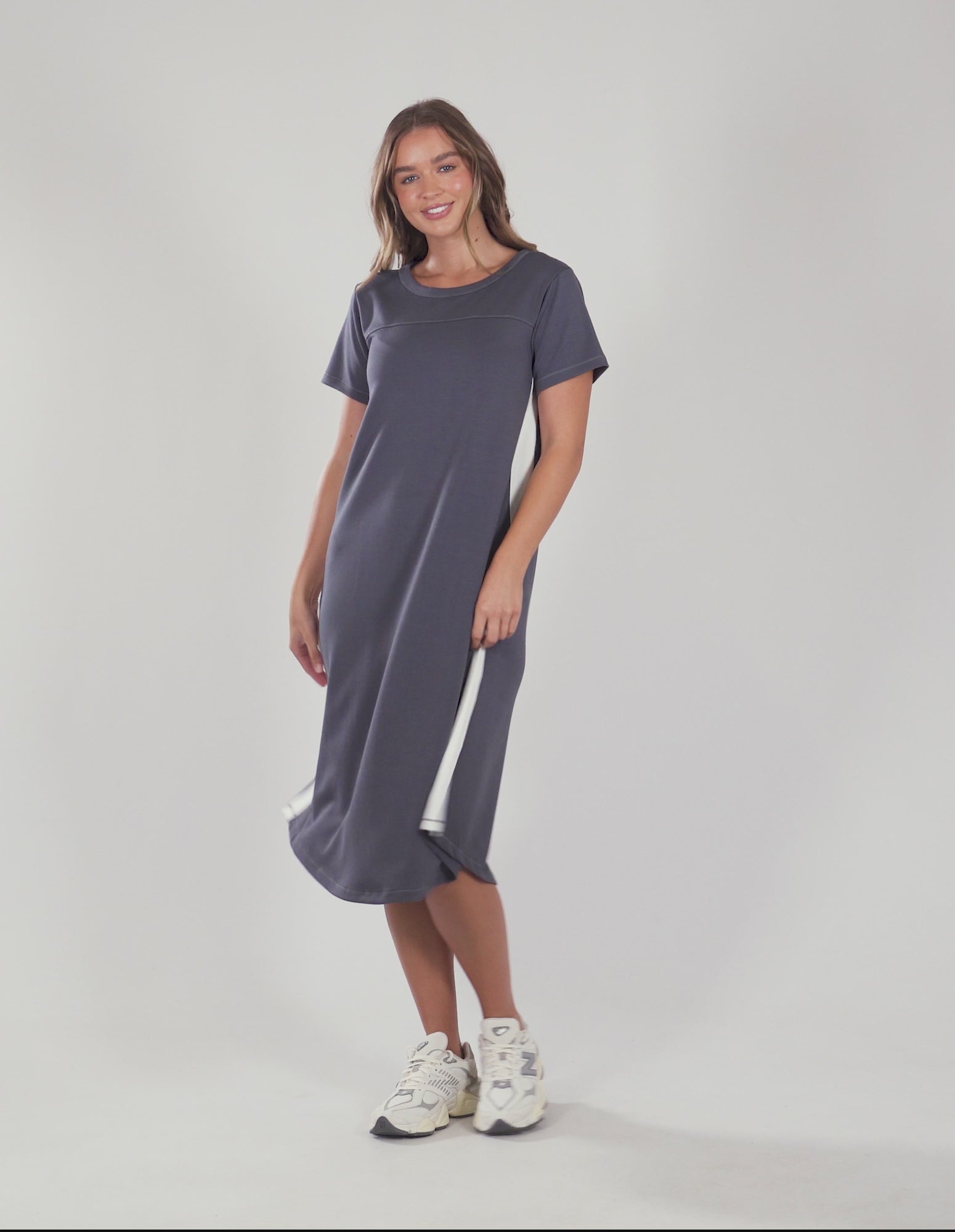 Slip into the Seattle Tee Dress and instantly up your chill game. With side contrast panels, a relaxed fit, and a midi length that moves with you, this dress is your new partner in crime for everything from coffee runs to weekend hangs. Comfy, cool, and totally effortless - yes please!