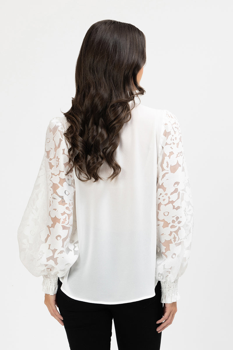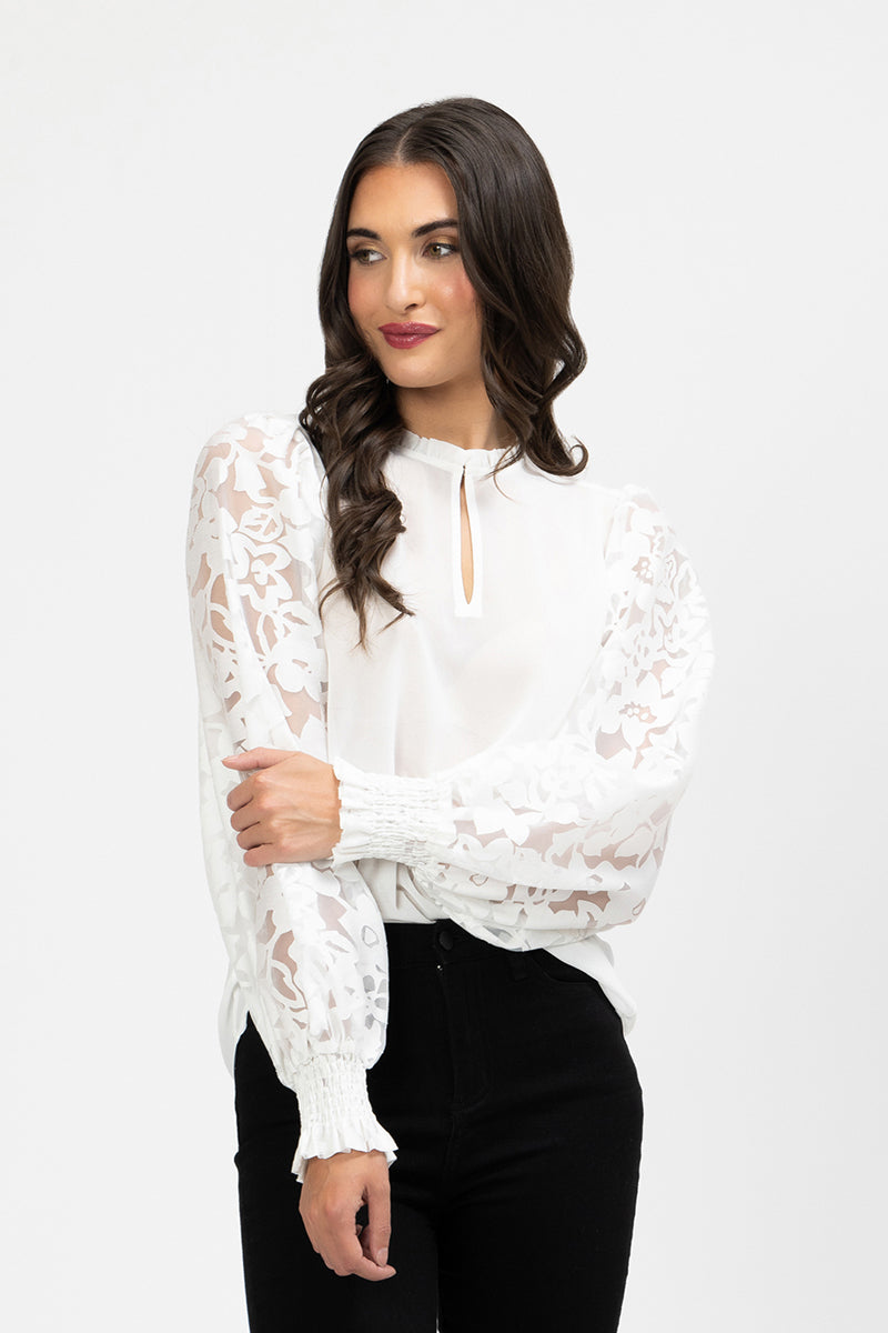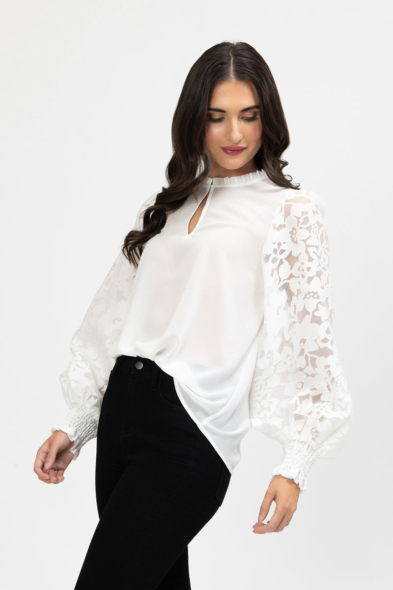Seeking Lola Movement Blouse - White Contrast Burnout