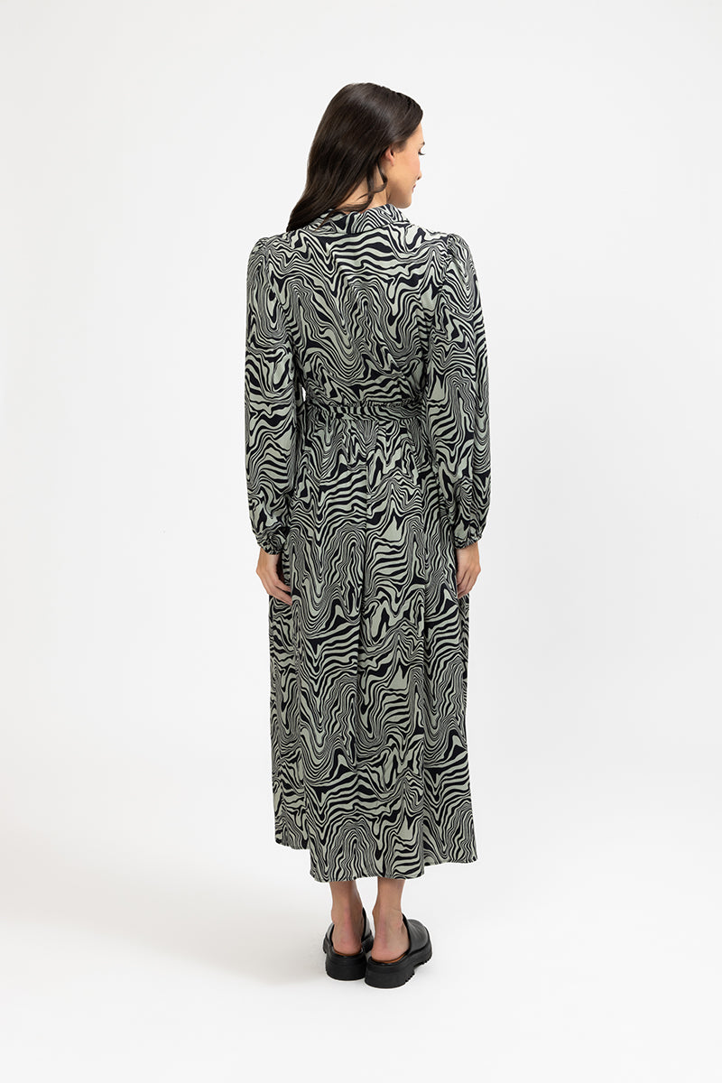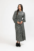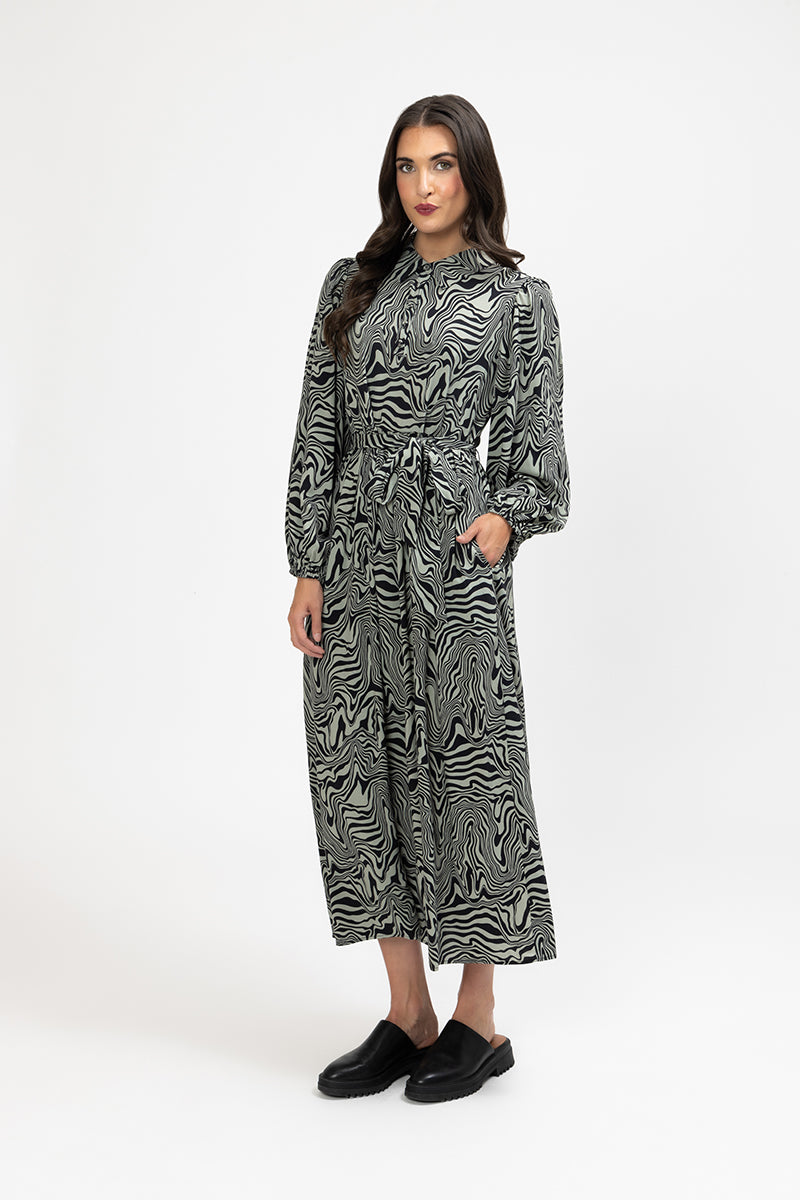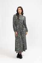 This long dress features long sleeves with elastic cuffs, providing both comfort and style, while the classic collar adds a touch of sophistication. The self-tie belt at the waist allows for a customizable fit, accentuating your silhouette beautifully. Designed as a button-through shirt dress, it offers versatility for various occasions, whether you're dressing up for a night out or keeping it casual for a day at the office. With practical pockets seamlessly integrated into the design, this dress combines fashion with functionality.