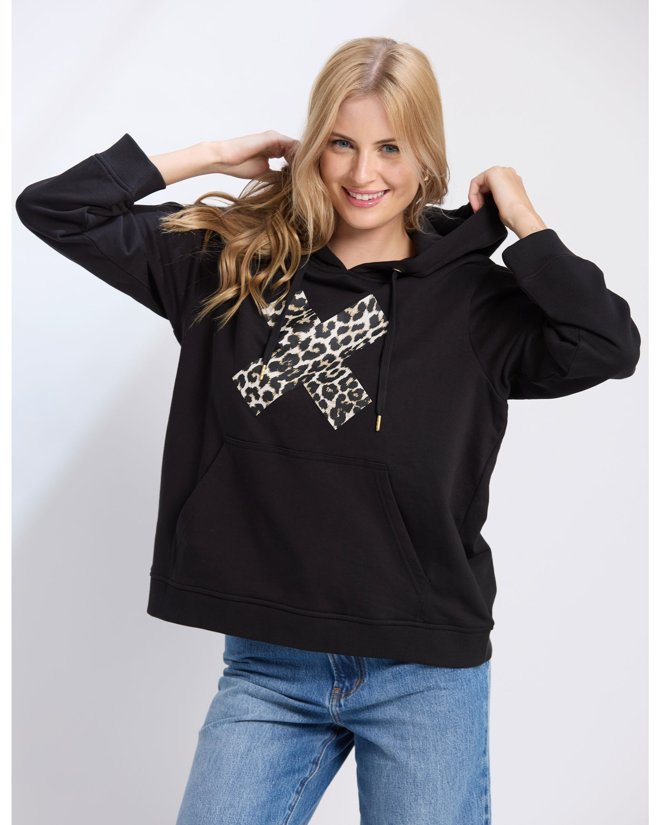 Stella & Gemma Hoodie - Black Leopard Cross