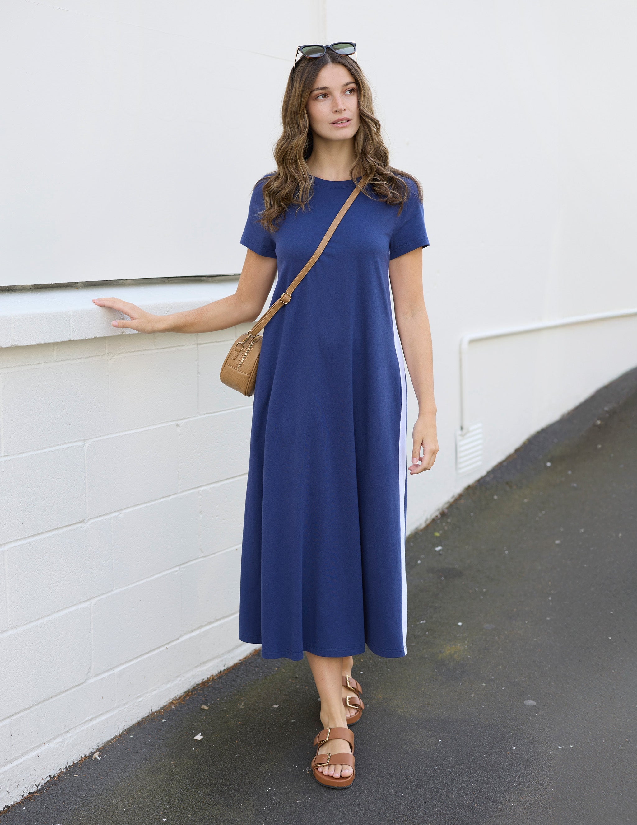 Betty Basics Zena T-Shirt Dress - Navy/Green Stripe