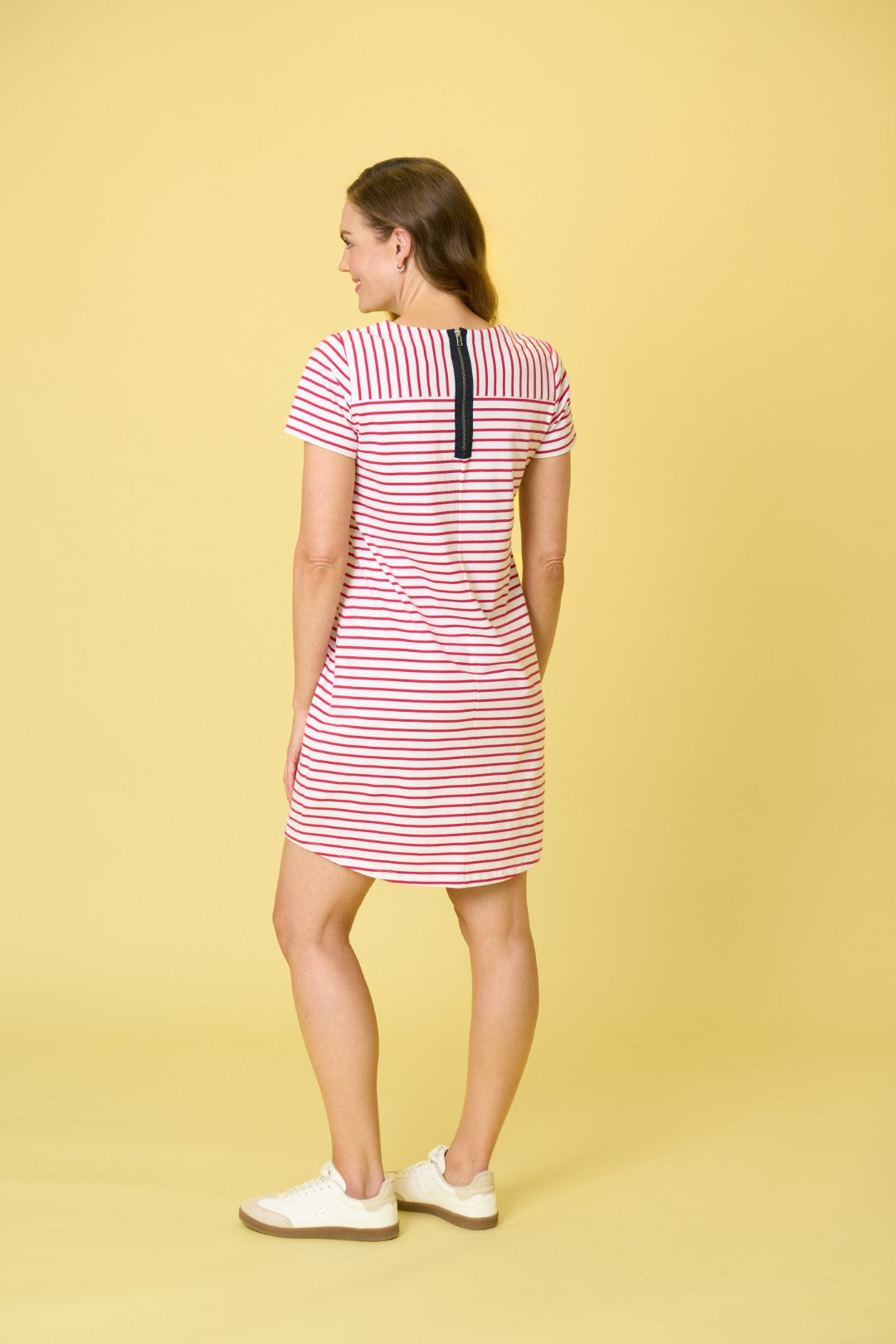 Easy to wear, fun, and stylish—the Charlie Jane Milford Dress is your perfect grab-and-go outfit. This striped t-shirt dress features a classic White & Raspberry Stripe that's both fresh and vibrant, making it an ideal choice for a sunny day.