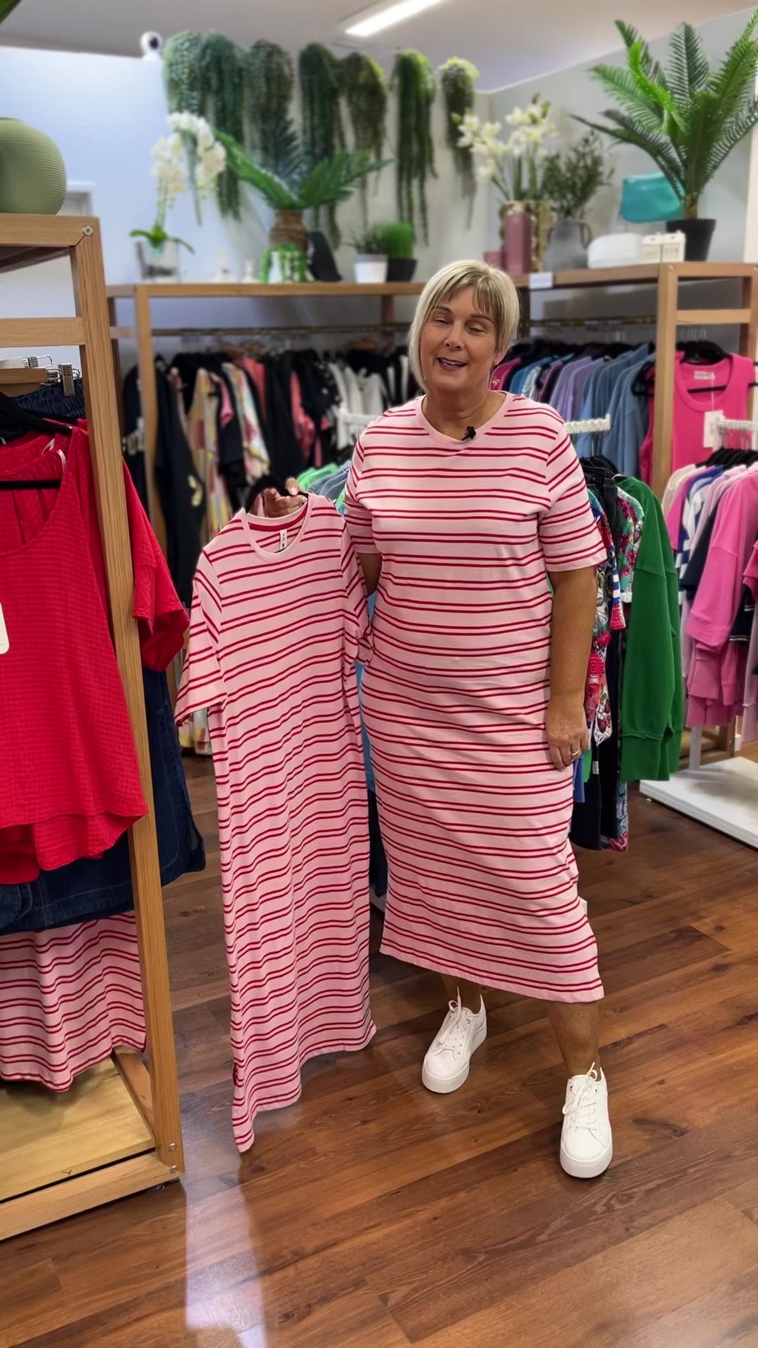 Pink and Red are the ultimate colour combo and add stripes and you can't go wrong! The new Bon Bon Dress is an effortless 100% cotton tee dress that's maxi length and full of colour and fun for those days spent chilling out this festive season!
