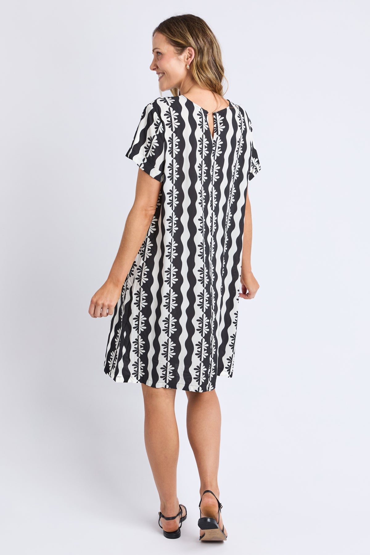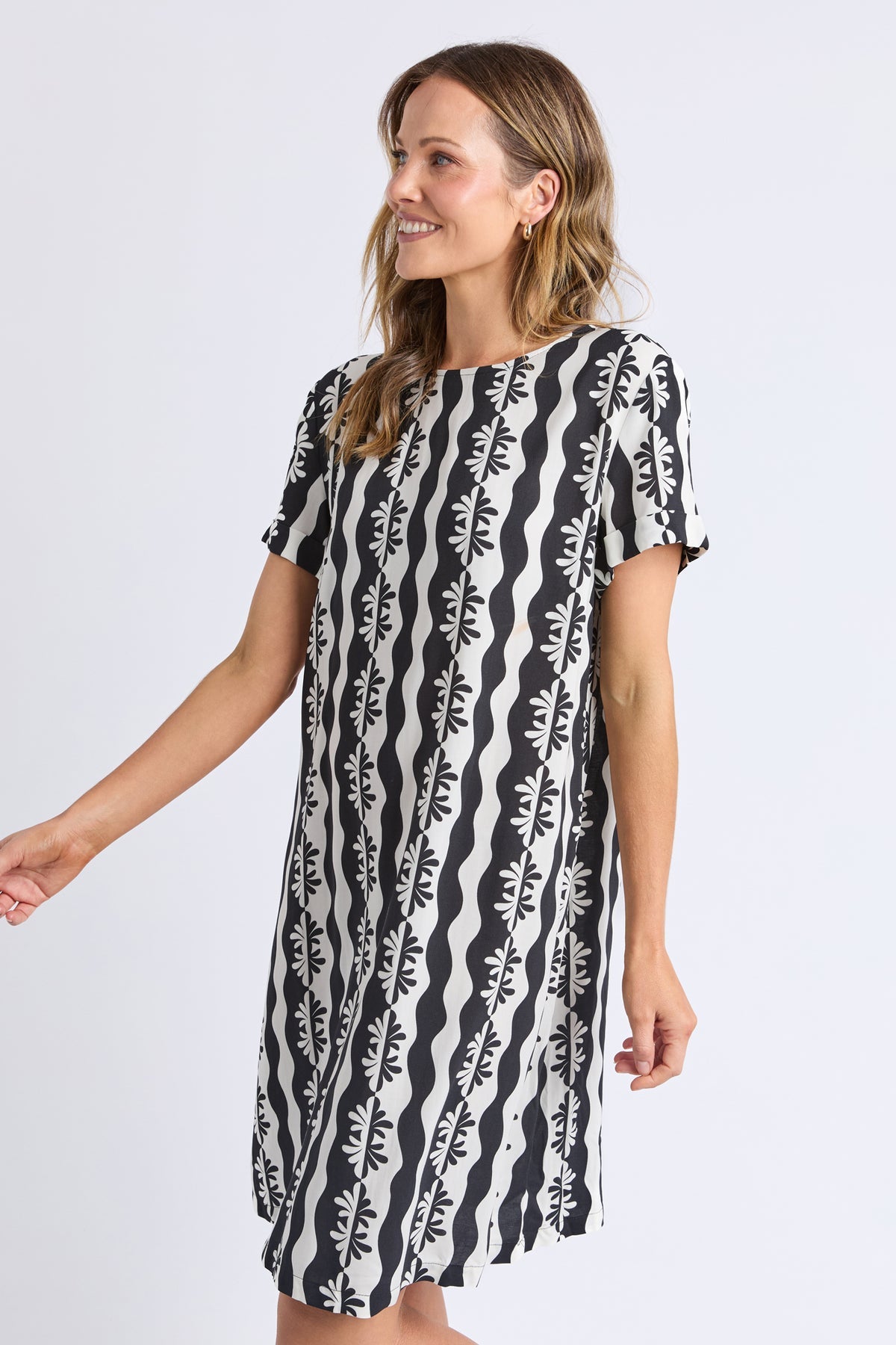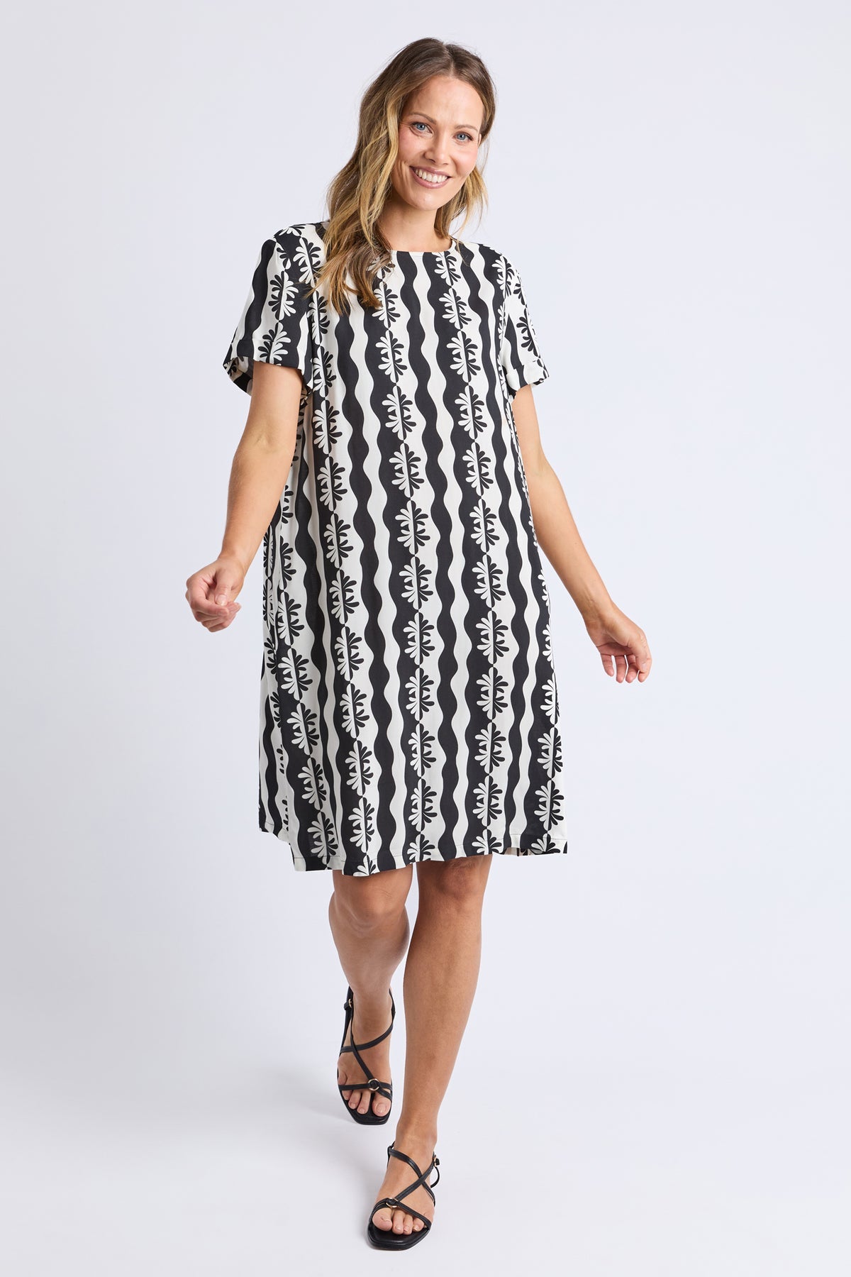 Elm Casa Shift Dress - Black/ Marshmallow Casa Print