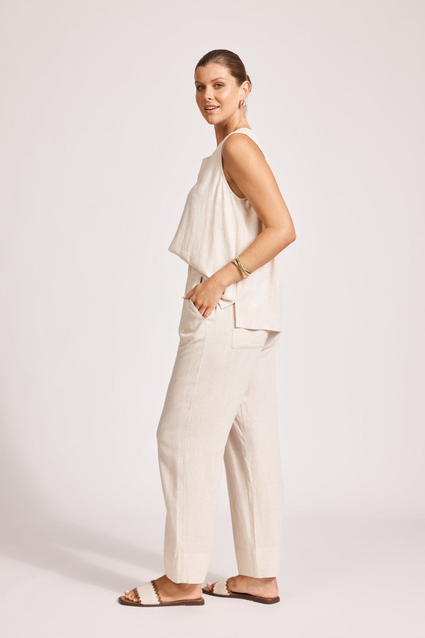 Eb & Ive is dedicated to creating wardrobe staples with a relaxed, ready-to-wear feel. The brand is renowned for its use of premium, natural fabrics, including soft jerseys, breathable linens, and crisp cottons. Each design embraces "simplicity with an edge," featuring thoughtful details and sophisticated silhouettes that fit seamlessly into your daily life.