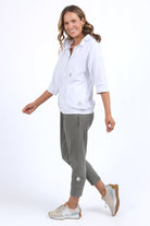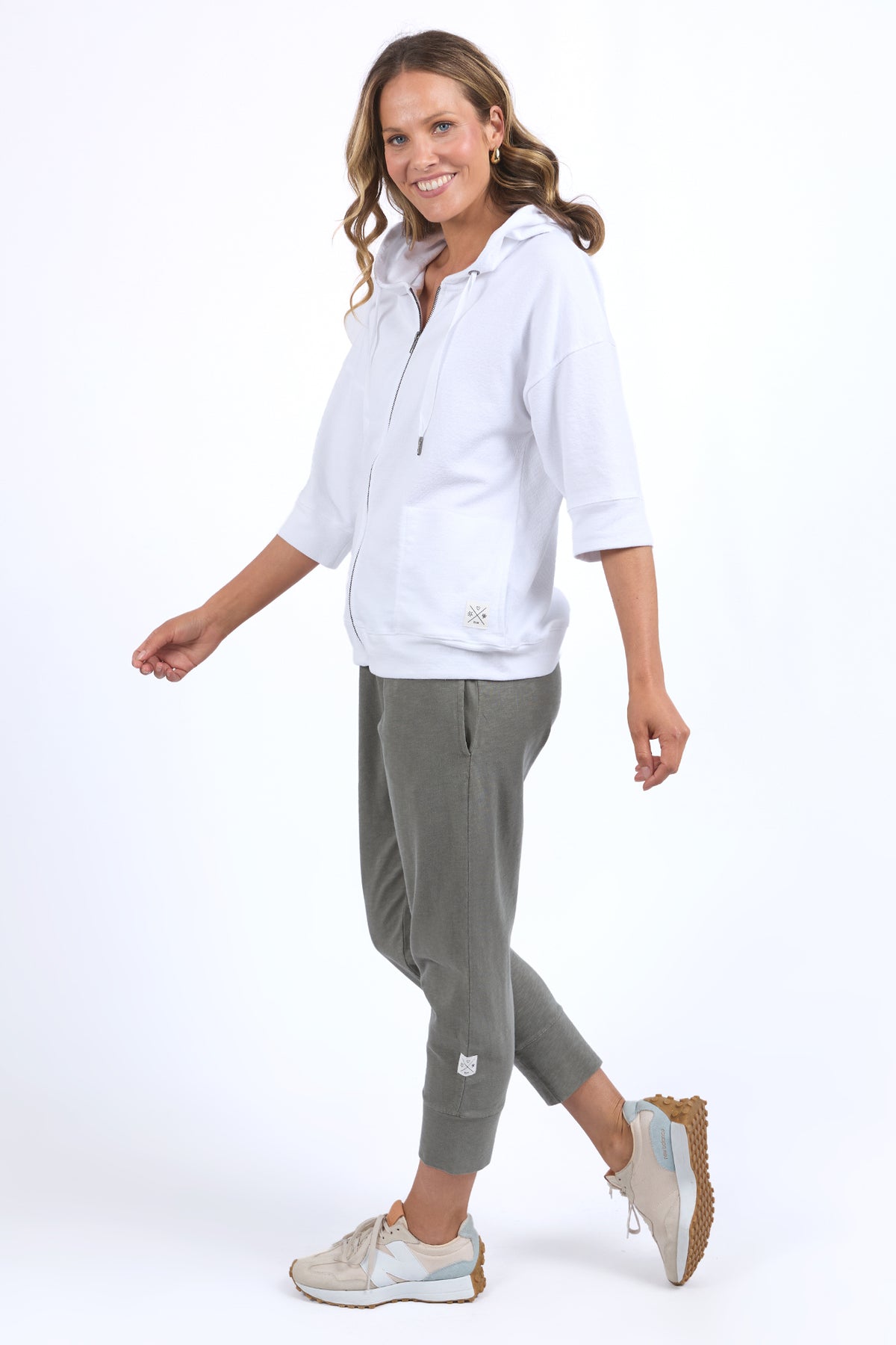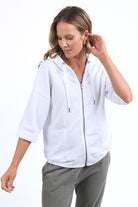Crafted From Cotton Waffle This Relaxed Hoodie Features An Easy Zip-Up Front, Hood, 3/4 Sleeves And Is Slightly Shorted In The Body Length. Pair It With Your Favourite Lounge Pants And Sneakers For The Ultimate Off-Duty Look.