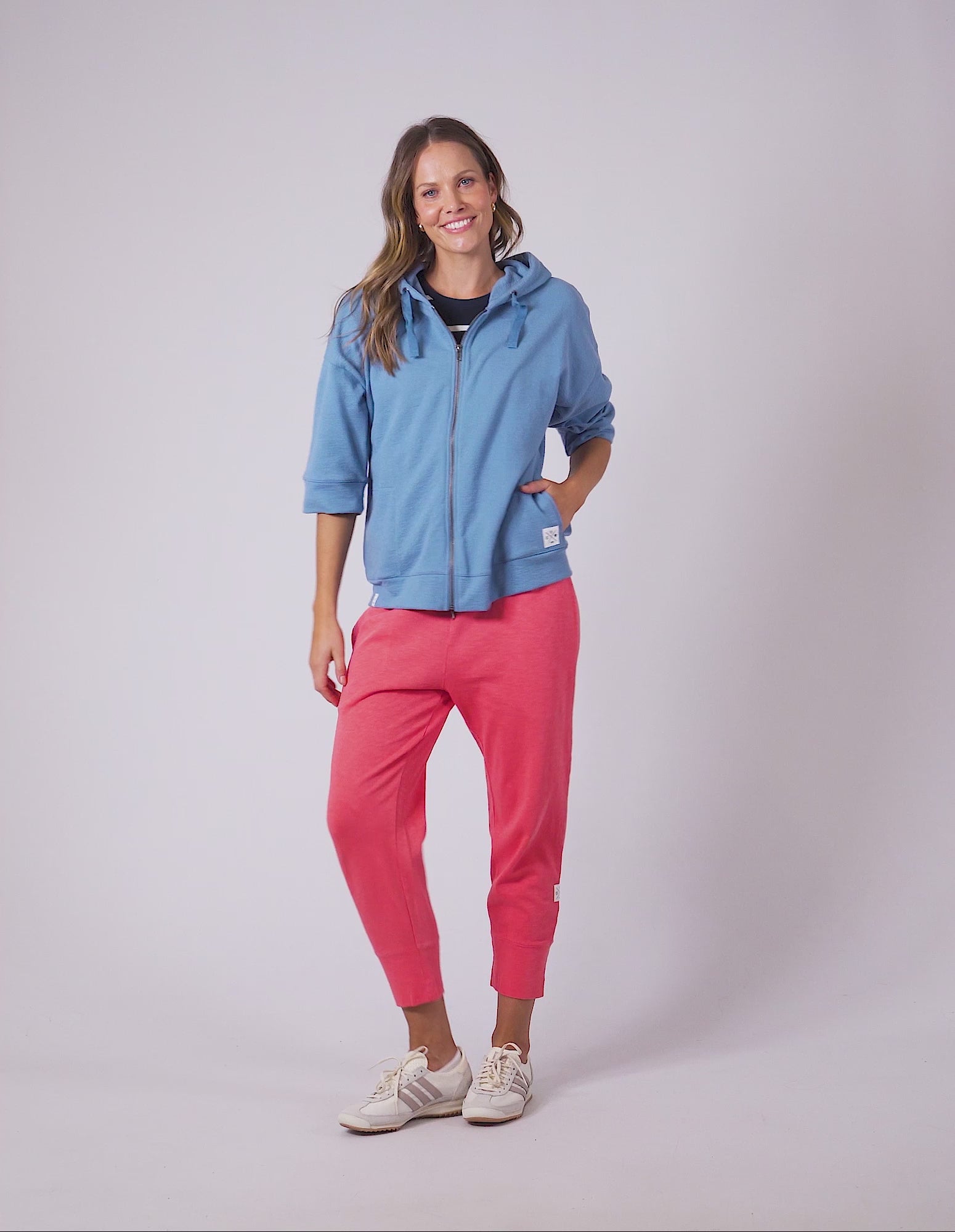 Crafted from cotton waffle this relaxed hoodie features an easy zip-up front, hood, 3/4 sleeves and is slightly shorted in the body length. Pair it with your favourite lounge pants and sneakers for the ultimate off-duty look.