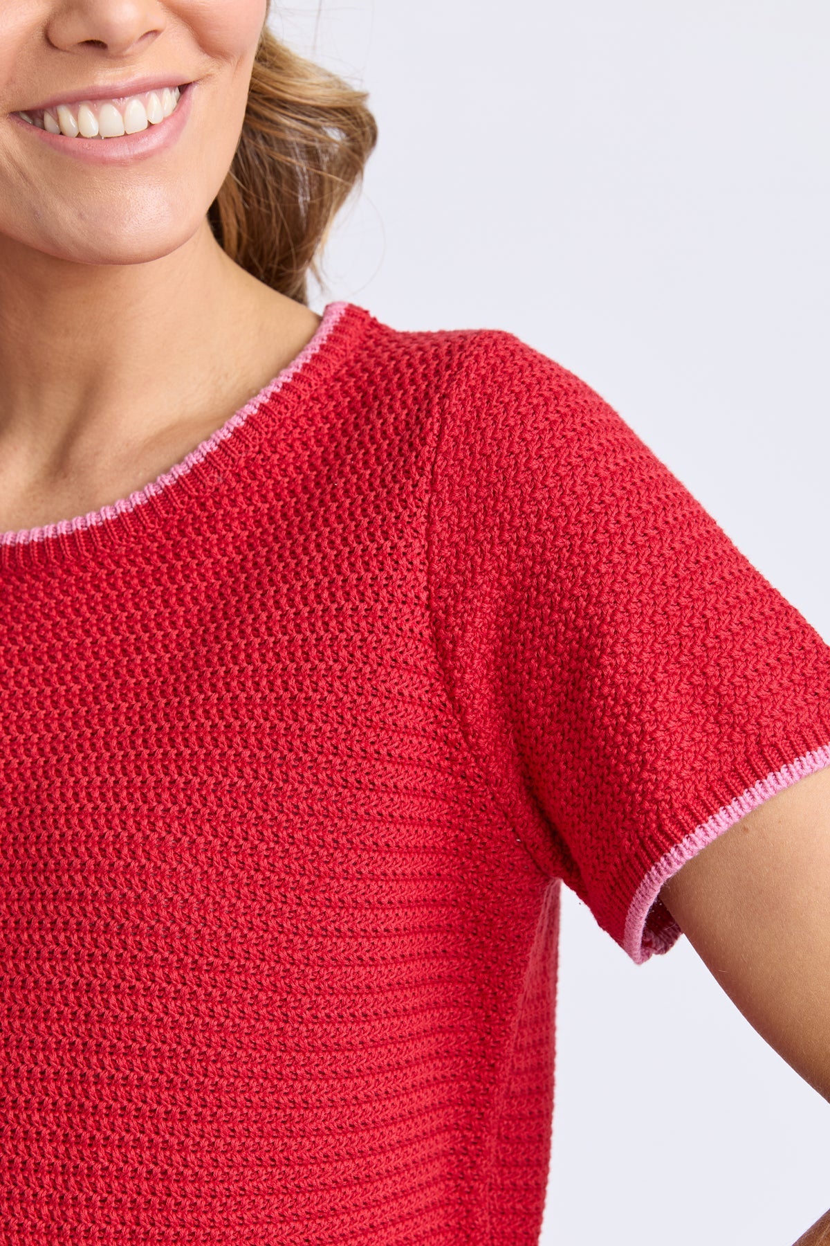 There's nothing more versatile than a little short sleeve knit. Wear layered with a tank for warmer days or over a shirt if the weather is cooler. This lovely ribbed design piece is the perfect effortless shape for everyone.