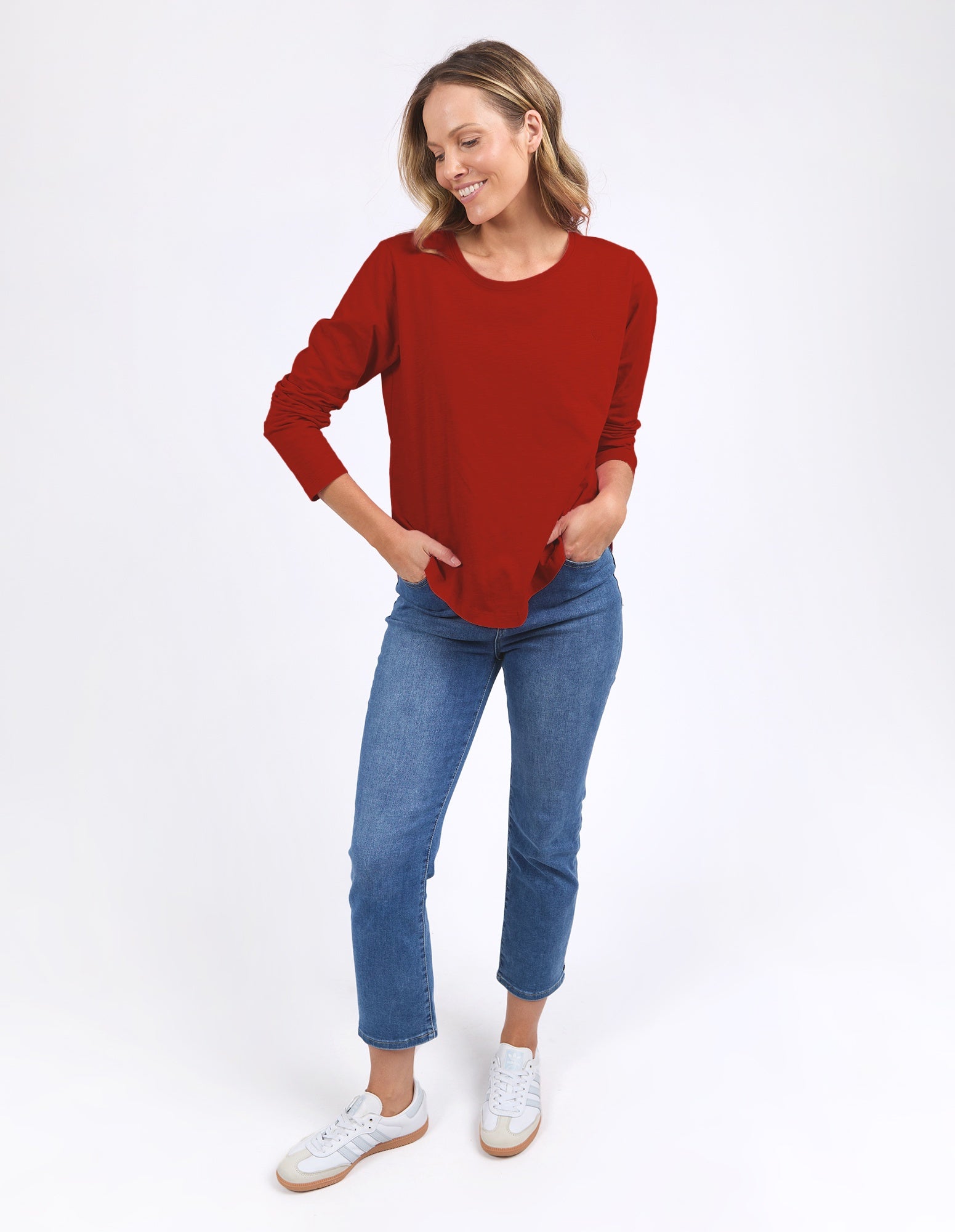 A basic but better! The Everyday Long Sleeve Tee is just as it sounds a fantastic piece for everyday wear. Layer it with a tee or under your favourite crew for extra warmth or wear it by itself as a stylish piece. Featuring a scooped hem and round neck you'll want this basic in every colour.