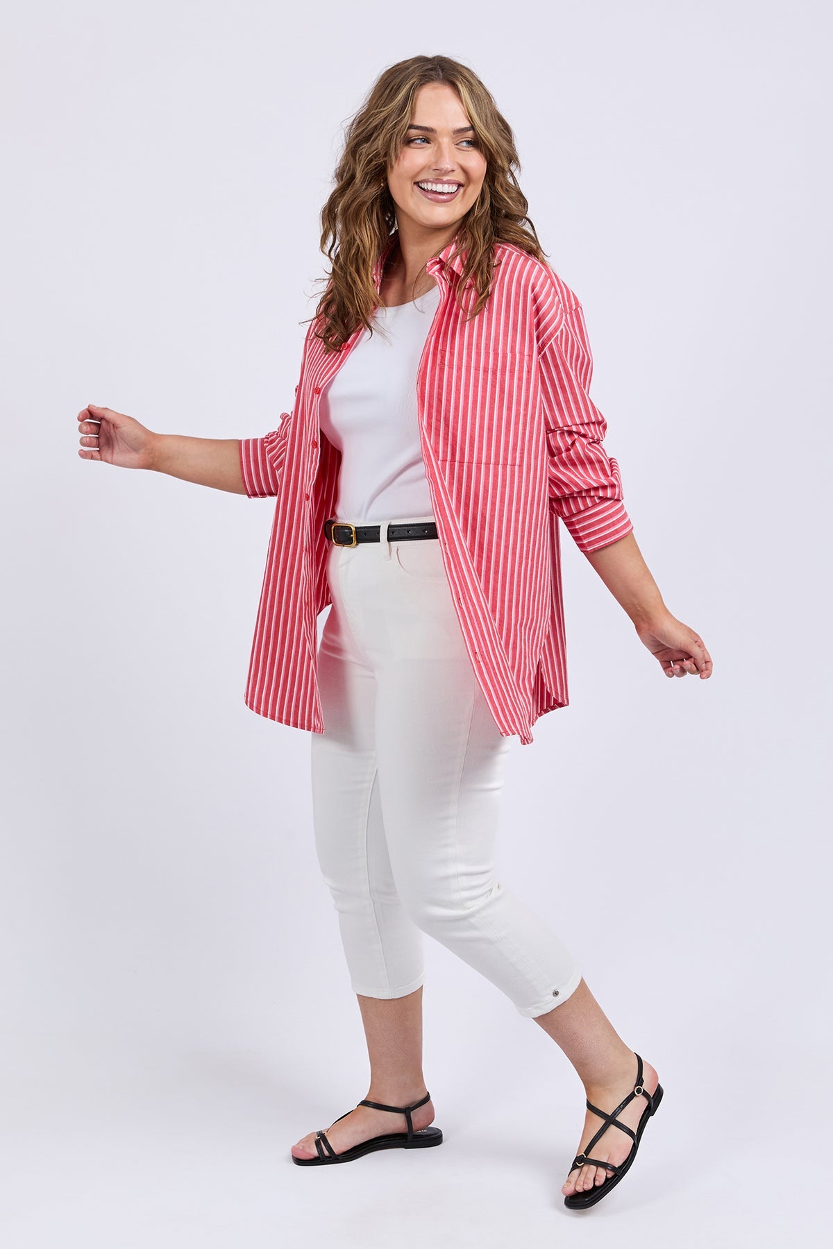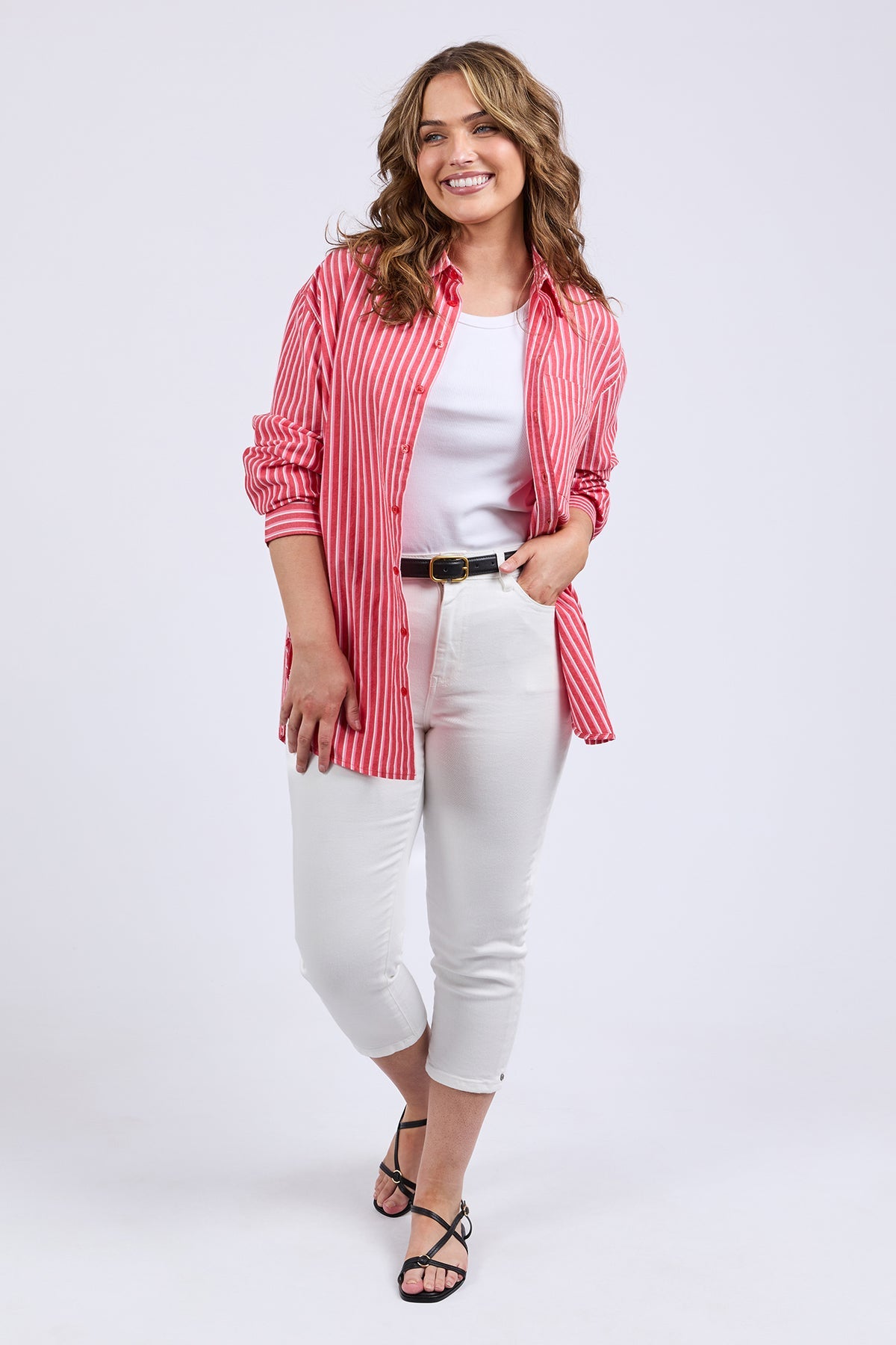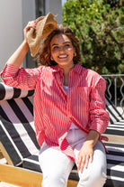 Meet your new favourite – the frankie striped shirt. it features yarn dyed stripe , relaxed fit, and best selling shape. Style it your way for an effortless look that works for any day of the week.