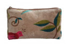 This aqua coloured velvet cosmetic bag in the pretty Songbird design will keep your lippy and other treasures safe.Features: W19.5 x H12x3cm Made from 100% cotton velvet Lined with zip closure Hand printed using traditional techniques