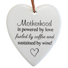 This Hanging Heart Motherhood sign is a charming little piece that celebrates the wonderful chaos of motherhood - and does it with a laugh. It measures 8x9cm (plus a handy hanger), and is made from ceramic in a crisp white, with an easy-to-read black font. A fantastic gift idea for new mums or anyone who could use a reminder that love, coffee, and maybe just a splash of wine is sometimes all it takes to get through the day!
