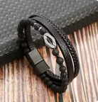 Fresh Accessories - Mens/Unisex Leather Bracelet Plat black metal