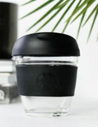 Each cup features borosilicate glass that can withstand extreme changes in temperature, paired with our food-grade silicone lid and band, which creates an insulating shield that is soft and a pleasure to hold.