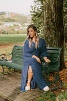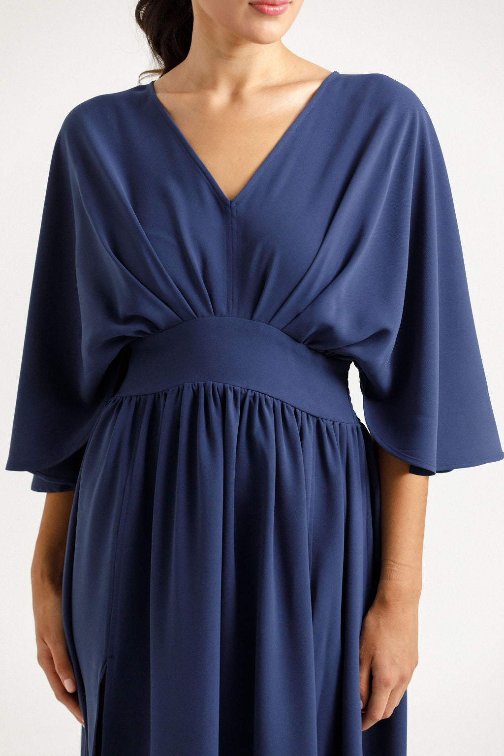 Featuring a cinched waist to enhance your shape, it offers a floaty feel for all-day comfort. With petal-detailed sleeves, a V-neckline, and a flowing skirt that cascades into an elegant split, this dress is perfect for any occasion, from casual outings to refined events.