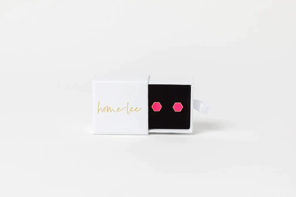 Home-Lee Stud Earrings Pink Hexagon