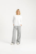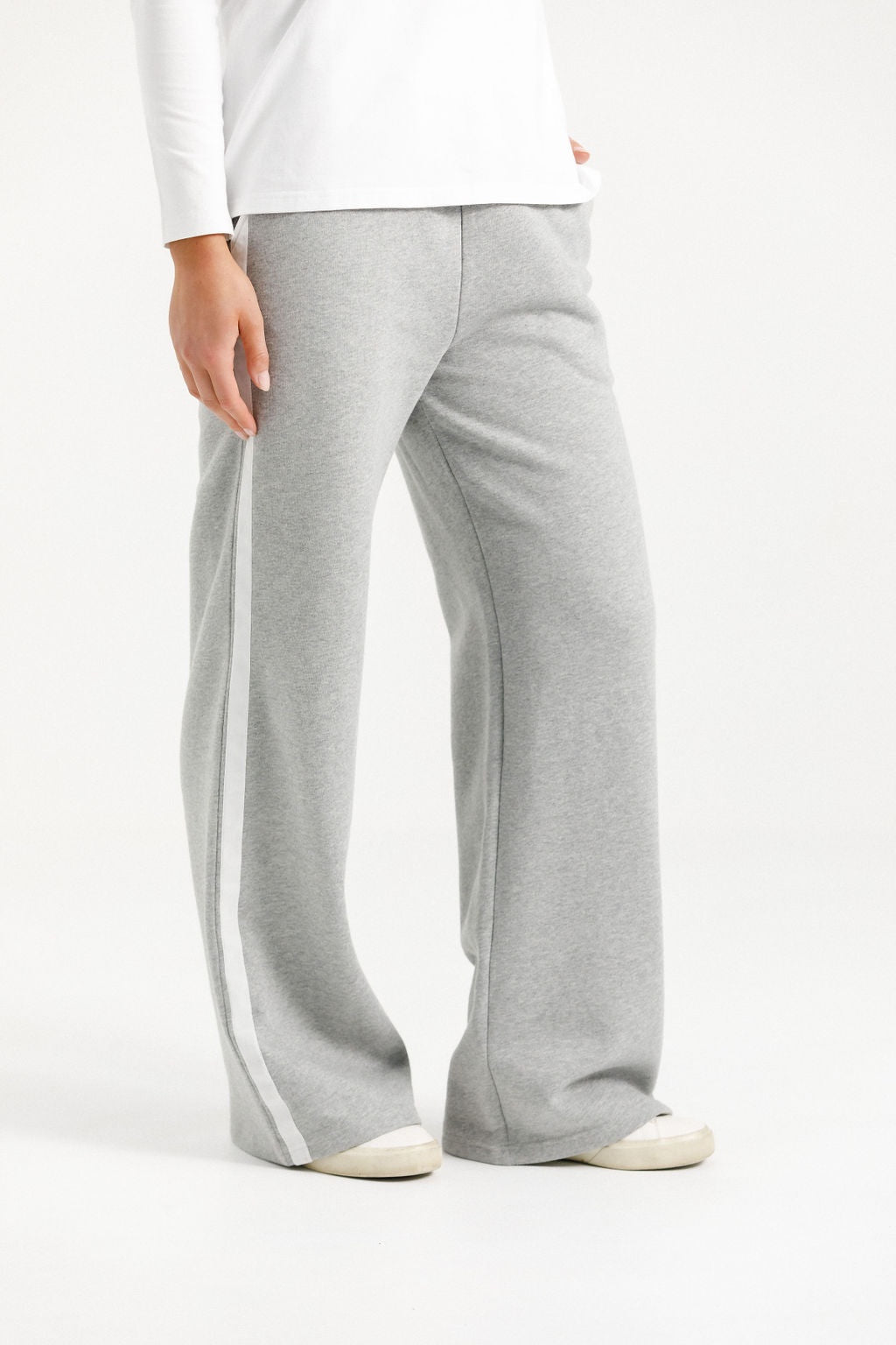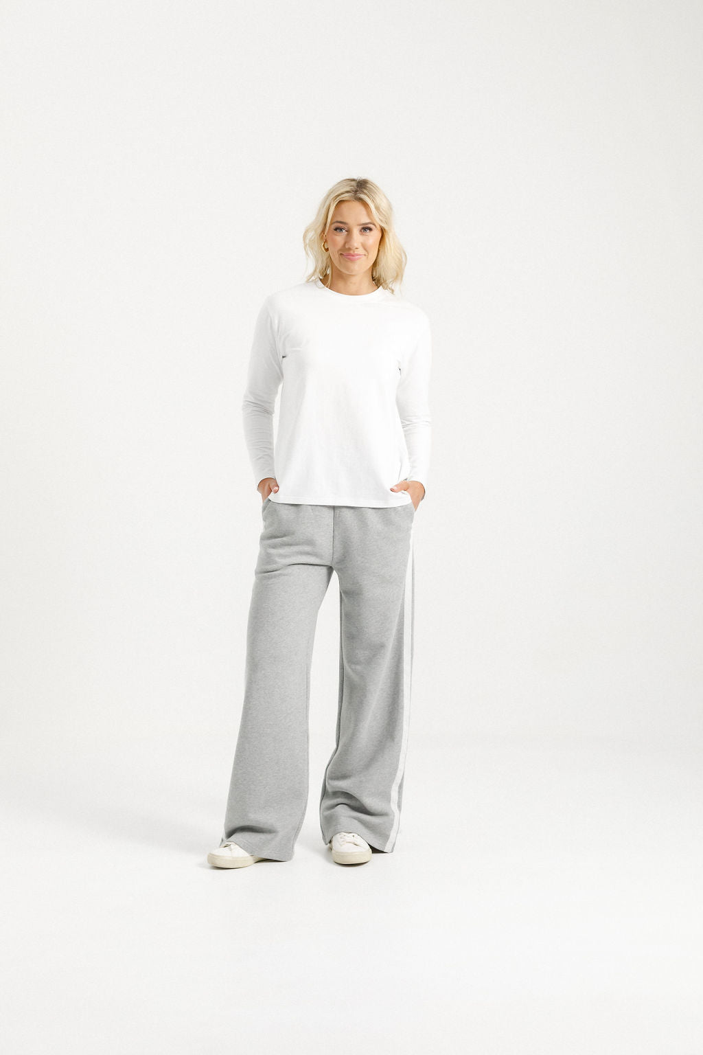 Homelee Alpine Palazzo Pants - Grey Marle with White Velvet Ribbon