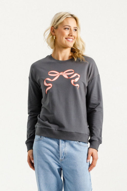 Homelee Camilla Crew - Graphite with Blossom Berry Bow