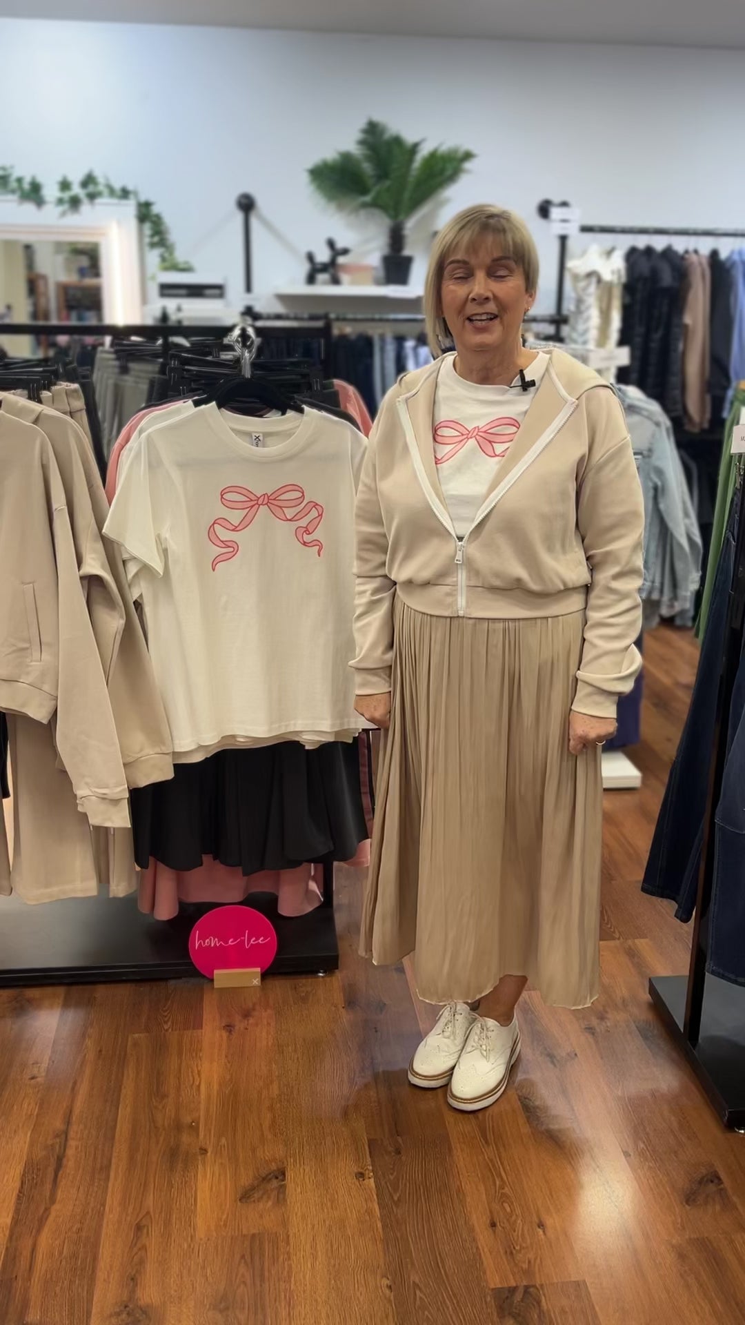 In our video Jan wears a size 10 (she is usually a 10-12 in tops)