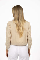 The Humidity Cruise Jacket in Latte is the perfect lightweight layering piece for any time of the year. This classic, soft jacket offers a timeless silhouette and a comfortable feel, making it an essential addition to your wardrobe.