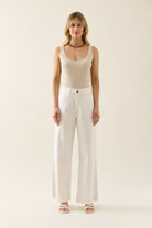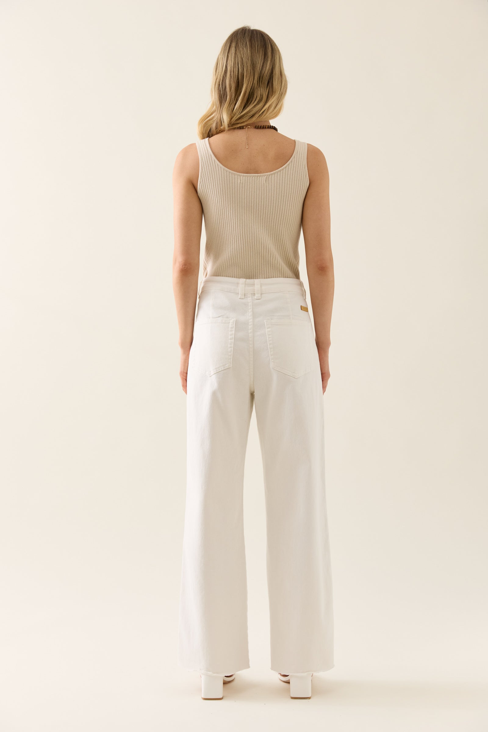 Say hello to your new favourite denim jeans! The Tate Denim is guaranteed to make an impression - with a classic wide-leg silhouette and a mid-rise fit, these denim jeans provide an effortless look that will complement any outfit. It features a button and zip closure with pockets and a raw edge ready for any occasion. Style it with a tank, cape and glam accessories for cocktails with the girls or a soft knit and sneakers while you run errands.