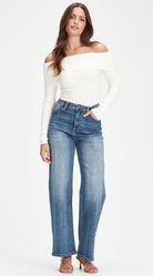 Crafted from a premium stretch denim (70.5% cotton, 27.5% polyester, 2% spandex), the Wendy Jean fits slimmer at the waist and hips before relaxing into a classic wide leg. The beautiful denim blue colour is a versatile shade that works with anything in your wardrobe.