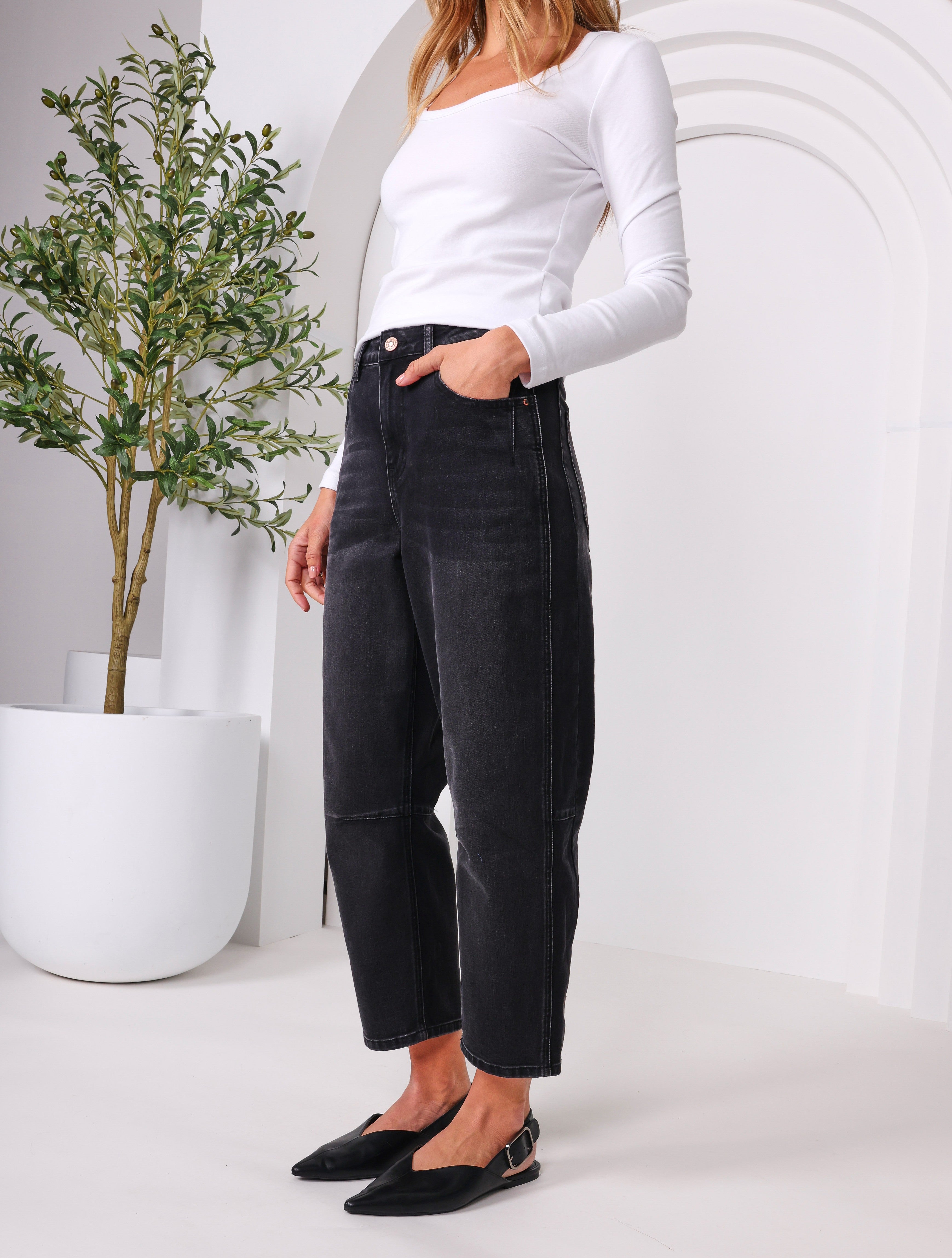Monaco Toni Barrel Jean - Black Wash